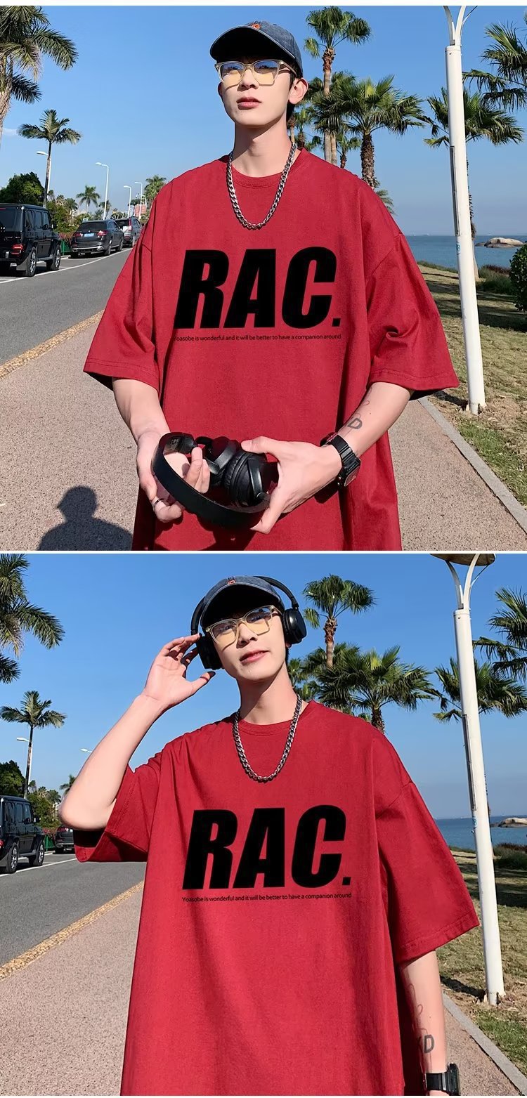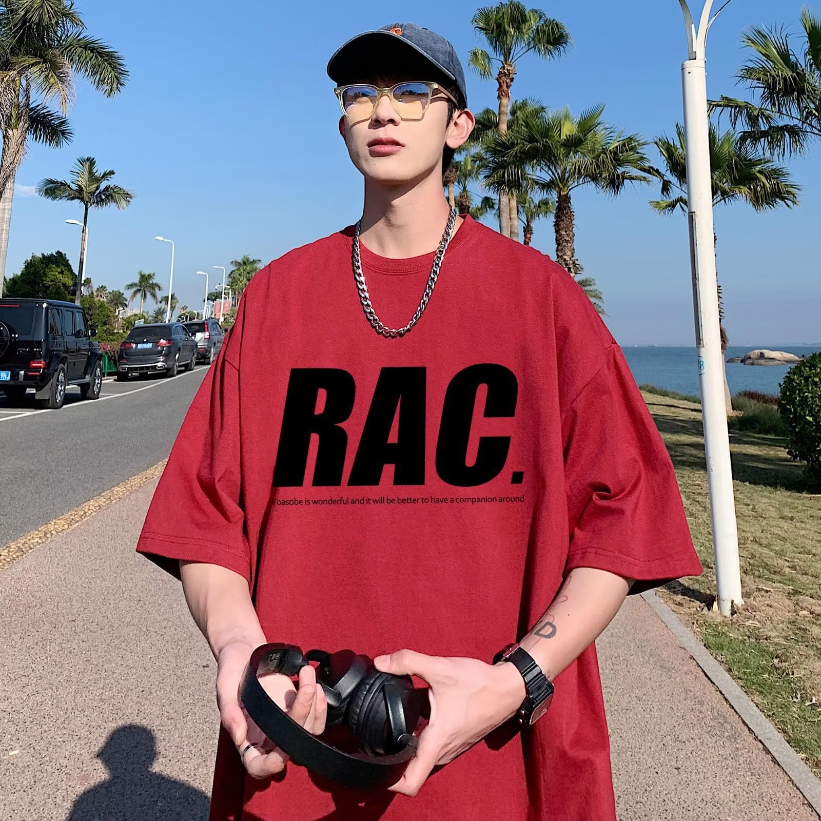 레드 아메리칸 반팔 티셔츠 남성용 패션 브랜드 올 매치 여름 레트로 유행 플러스 사이즈 오버 사이즈 남성복스토어 가기