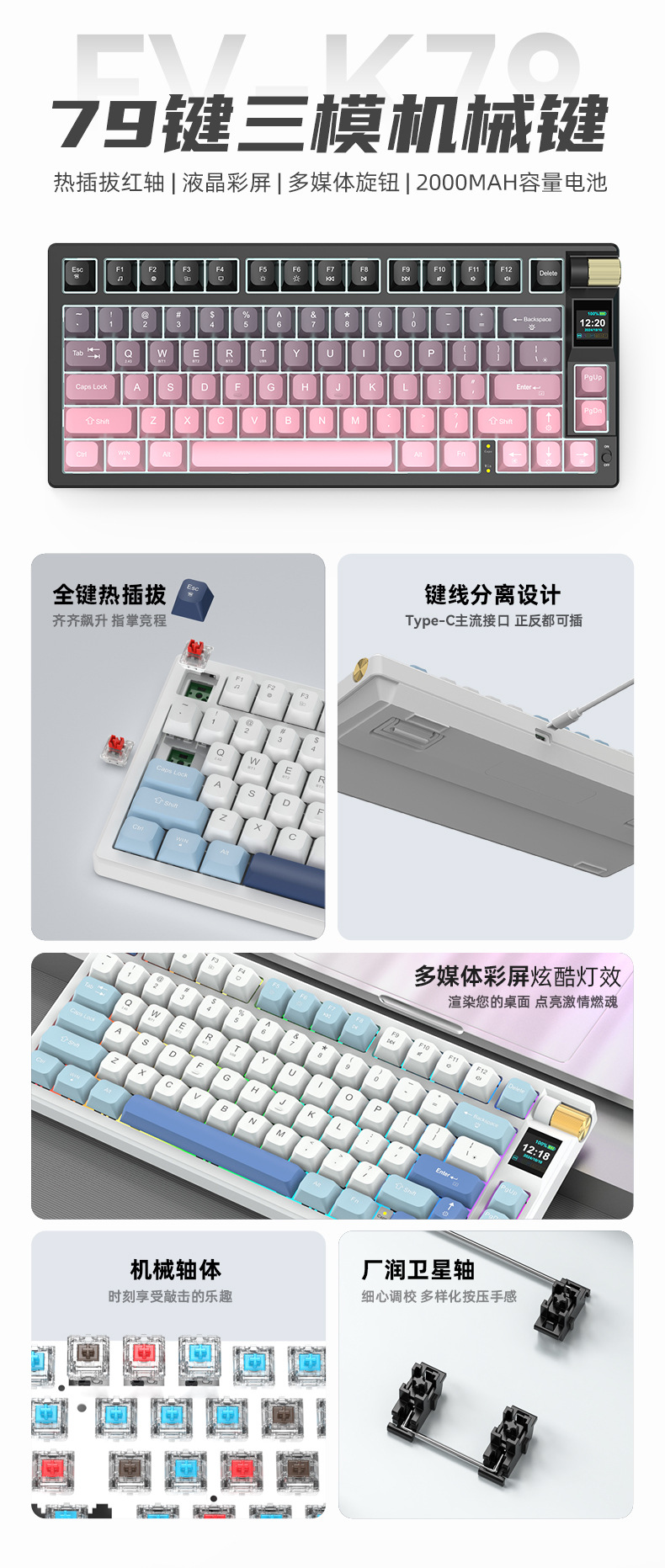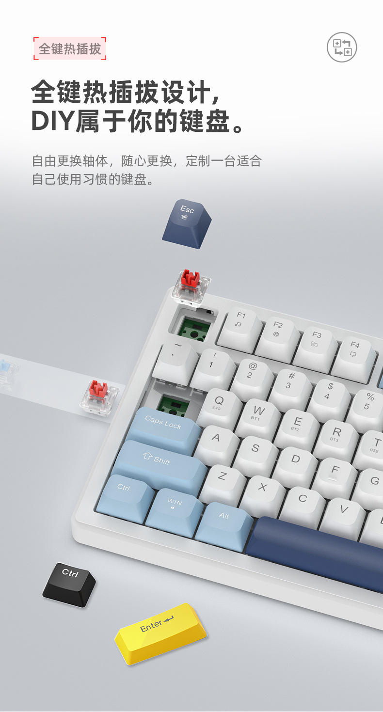 k79 게임 e스포츠 맞춤형 3모드 기계식 키보드 가스켓 핫스왑 고급스러운 무선 키보드