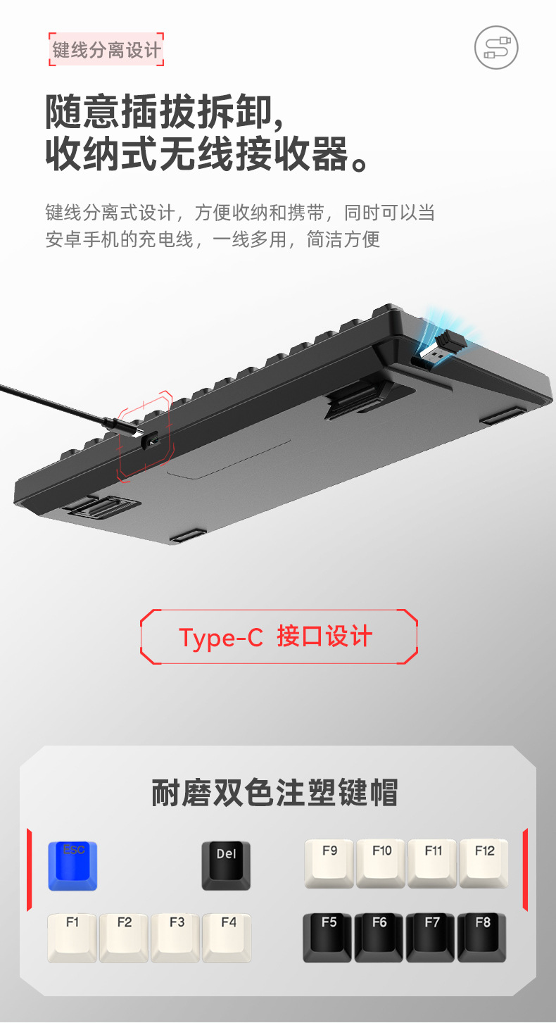 • 손잡이형 투명 3모드 기계식 키보드