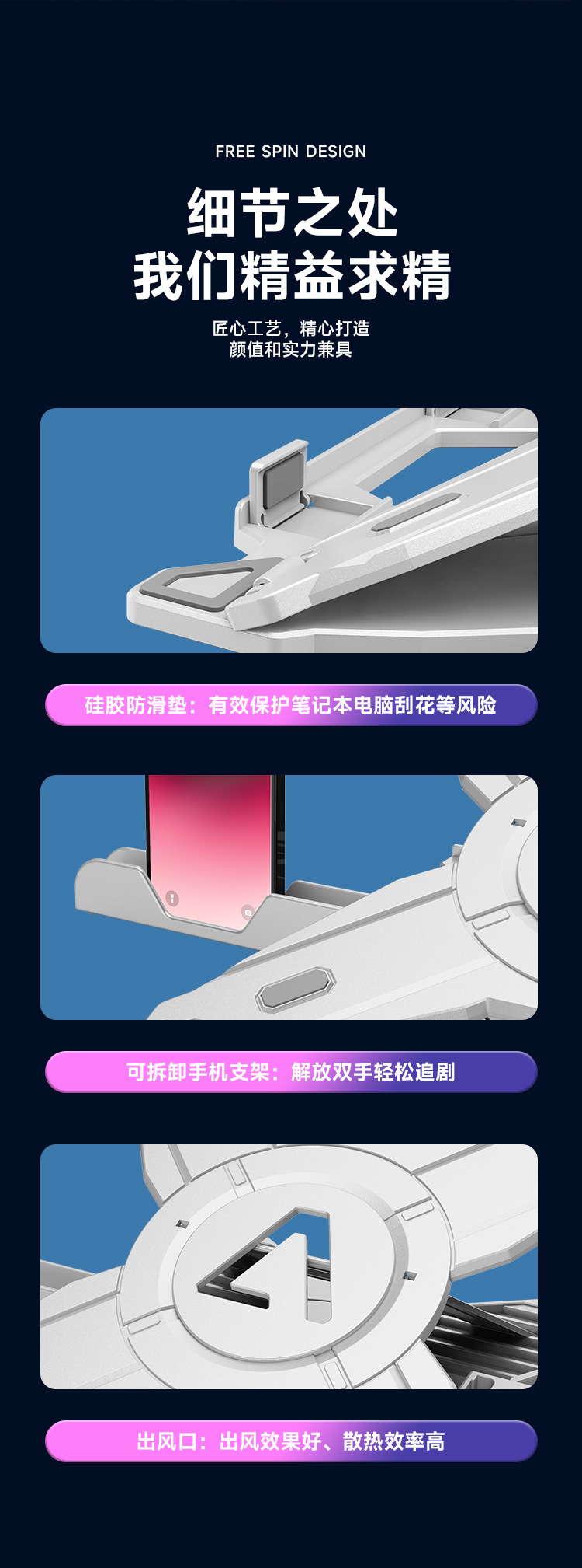 데스크탑 노트북 브래킷 360 ° 회전 브래킷 상승 리프팅 접이식 휴대용 휴대용 열 분산 조정 가능