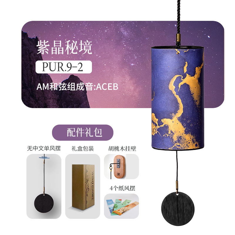 • 9톤 윈드 차임 자수정 시크릿 AM 코드 + 호두나무 벽걸이