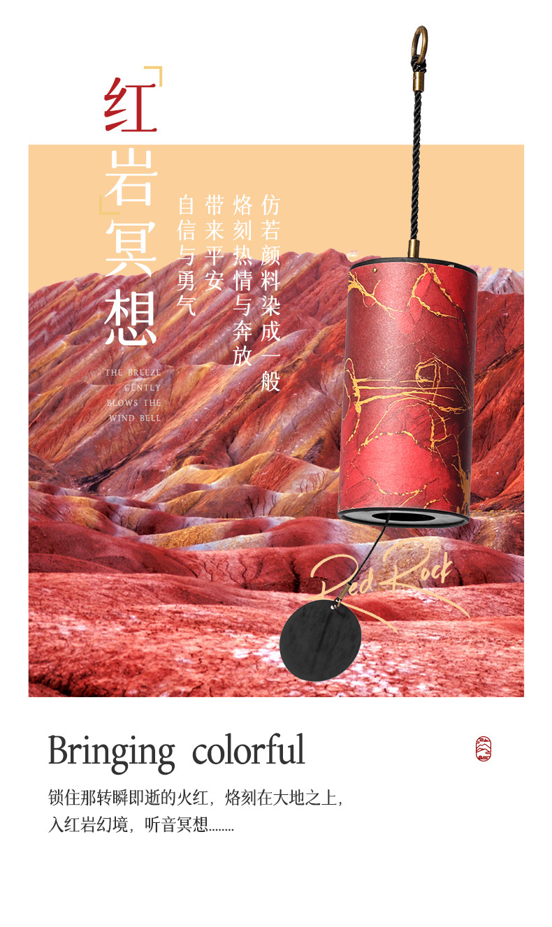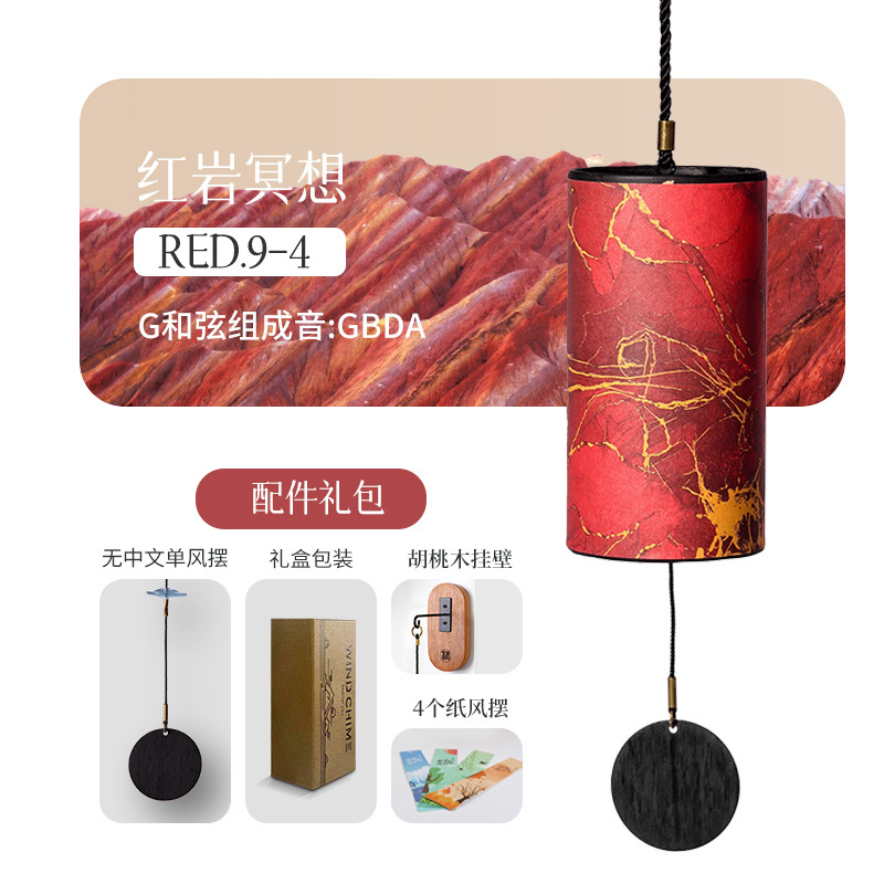 • 9톤 윈드 차임 레드 록 명상 G 코드 + 레드 로즈 벽걸이