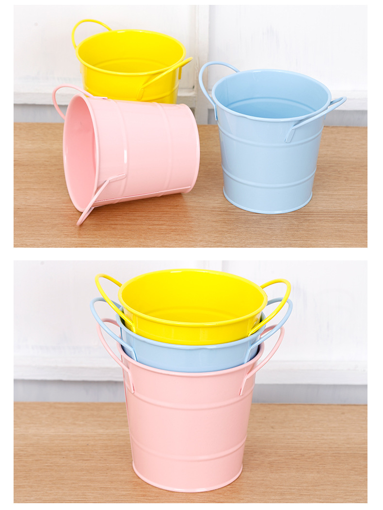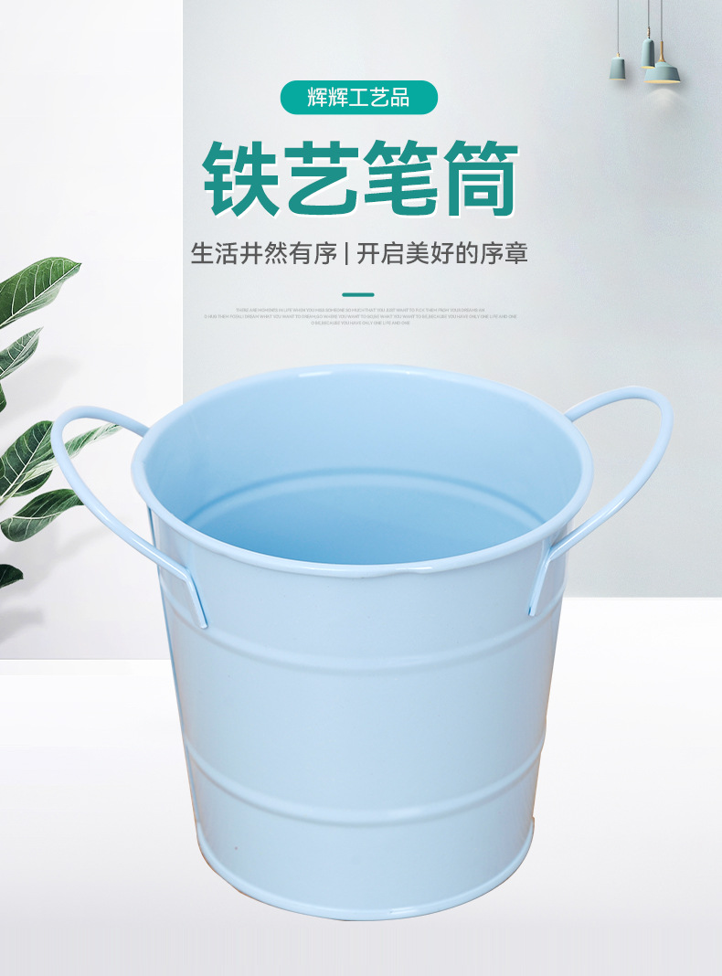 캔디 컬러 연철 펜 홀더 바이노럴 통 다육 녹색 식물 화분 데스크탑 보관 데스크 장식품 미니 철 버킷