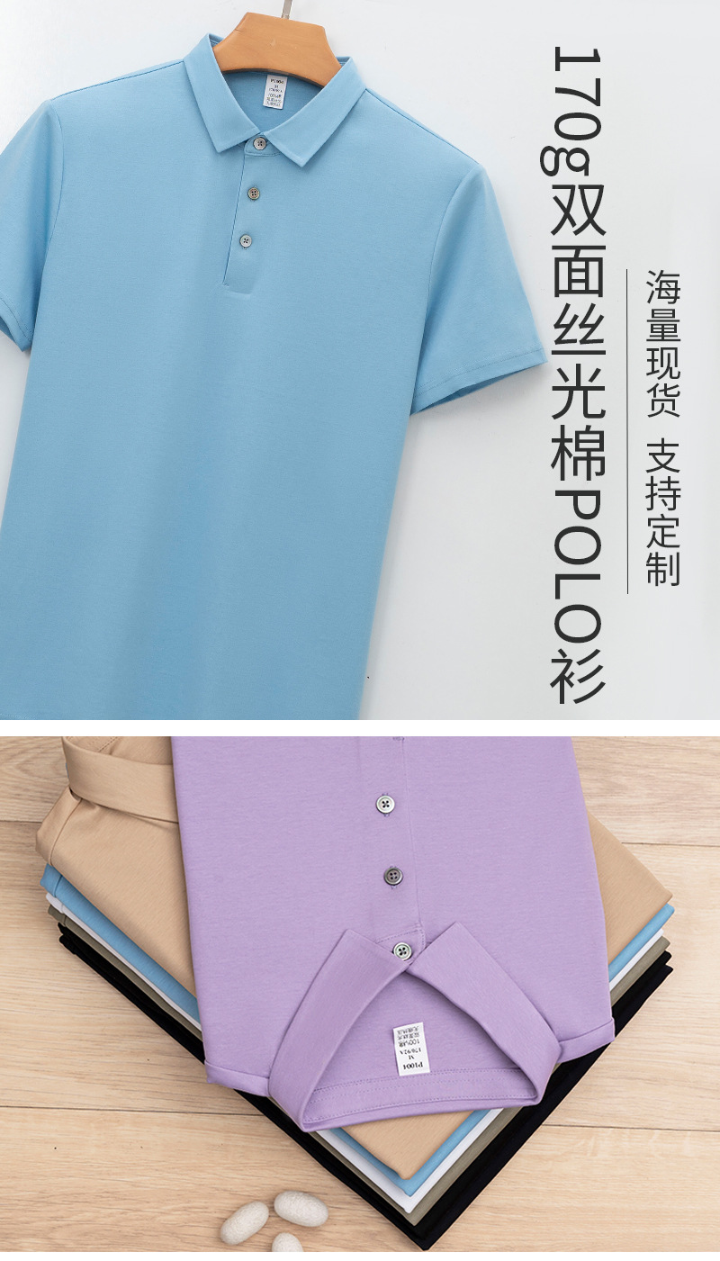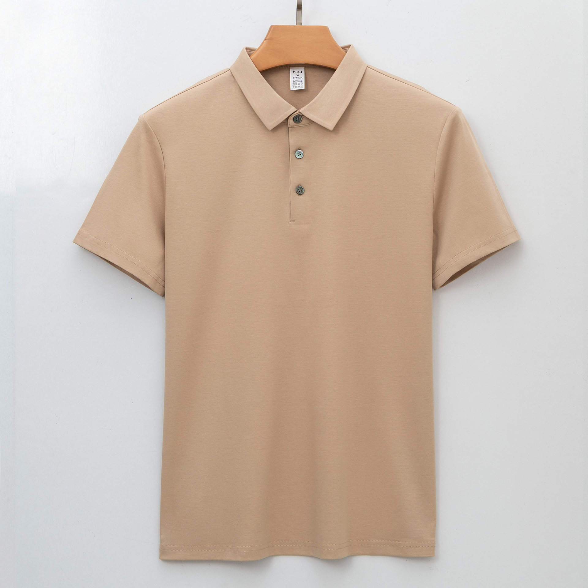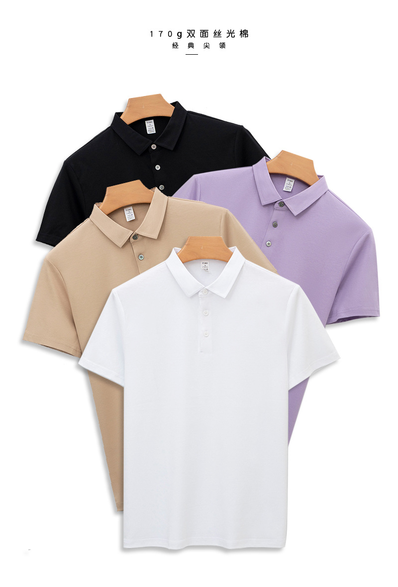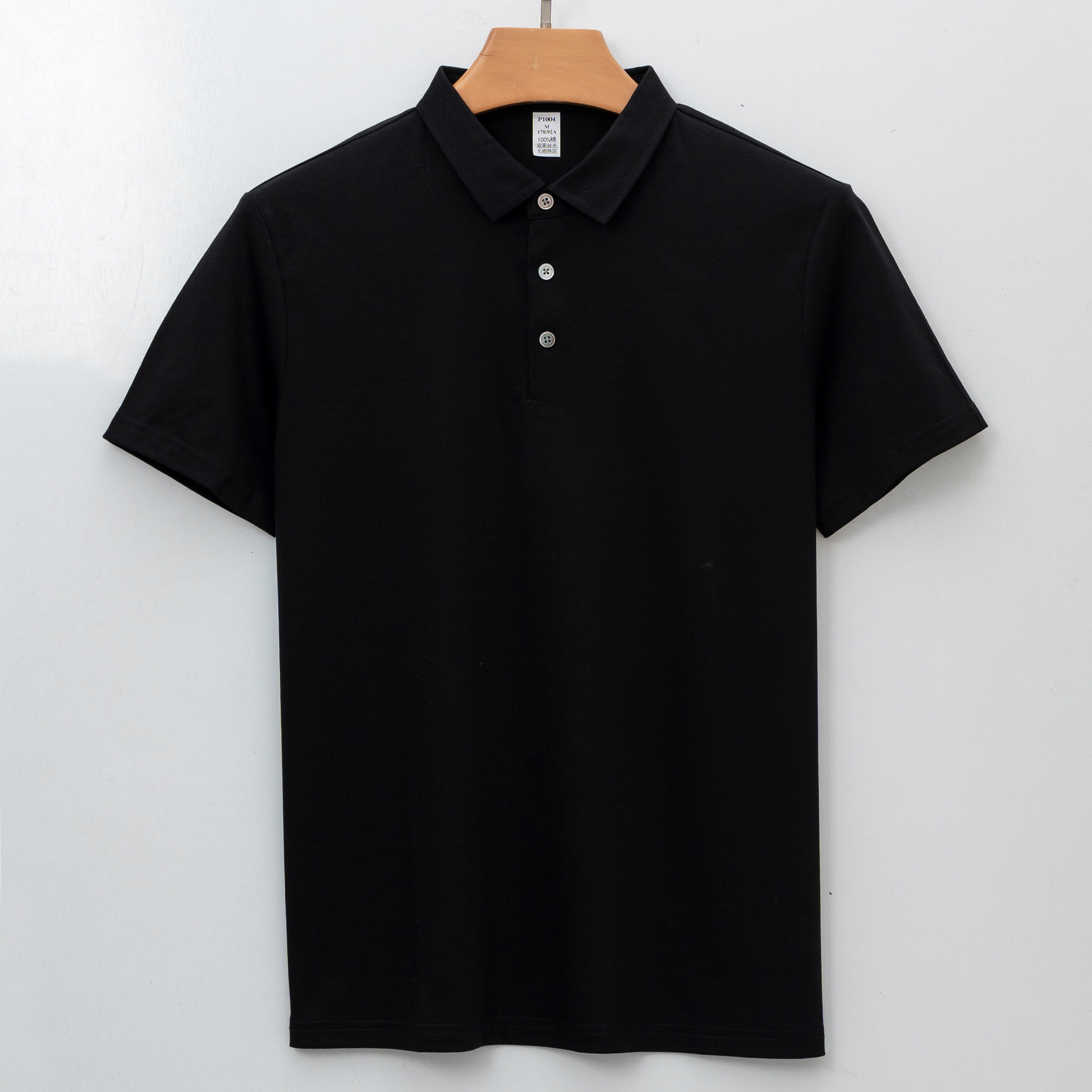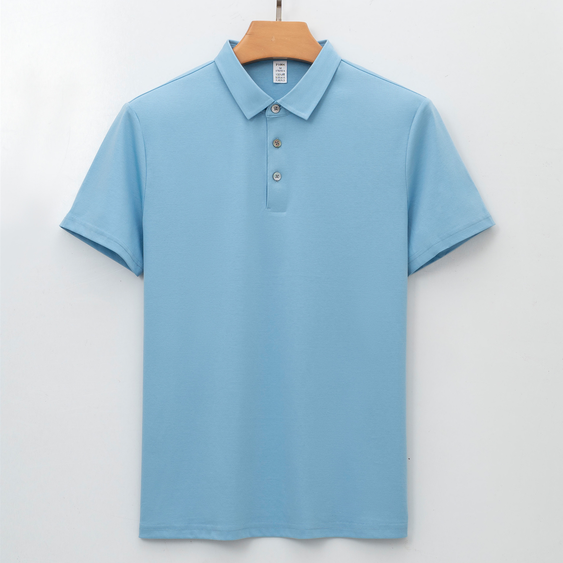 남성용 하이 엔드 120 양면 머서리화 코튼 폴로 셔츠 반팔 비 다림질 긴면 티셔츠 핫 프레스 이음매없는 칼라 폴로 셔츠스토어 가기