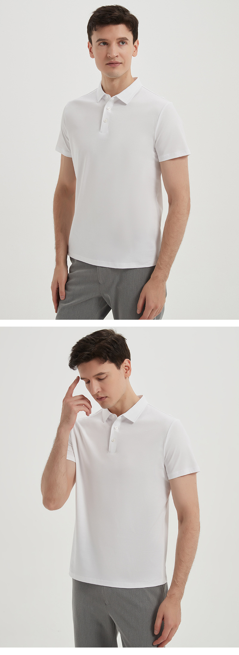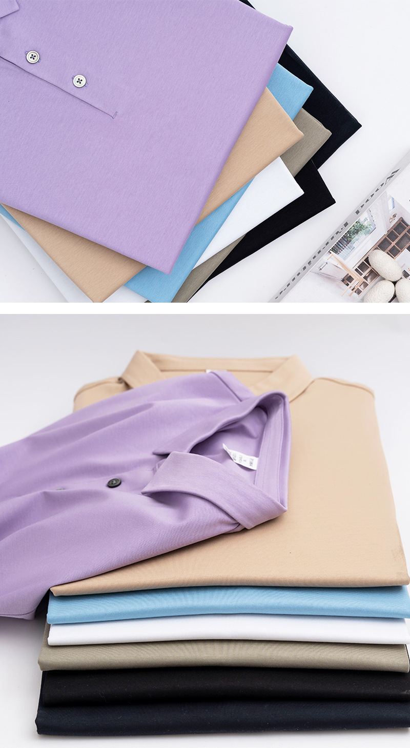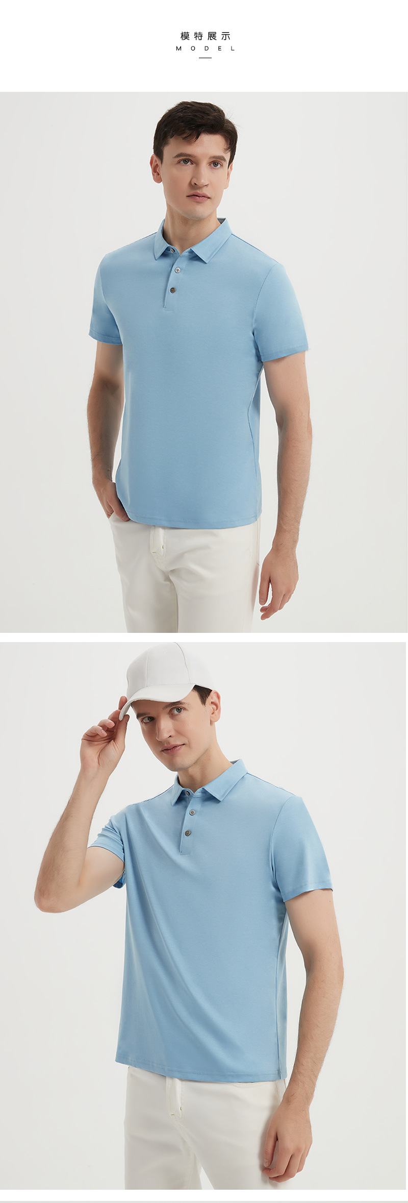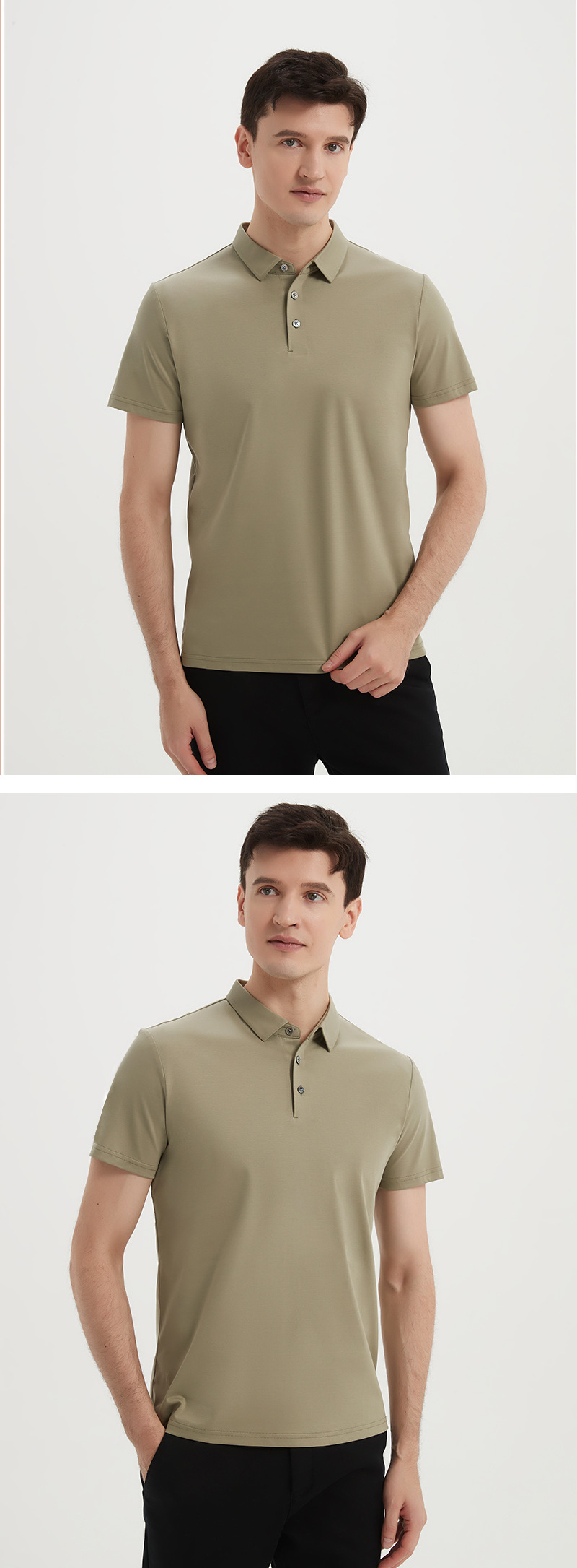 남성용 하이 엔드 120 양면 머서리화 코튼 폴로 셔츠 반팔 비 다림질 긴면 티셔츠 핫 프레스 이음매없는 칼라 폴로 셔츠스토어 가기
