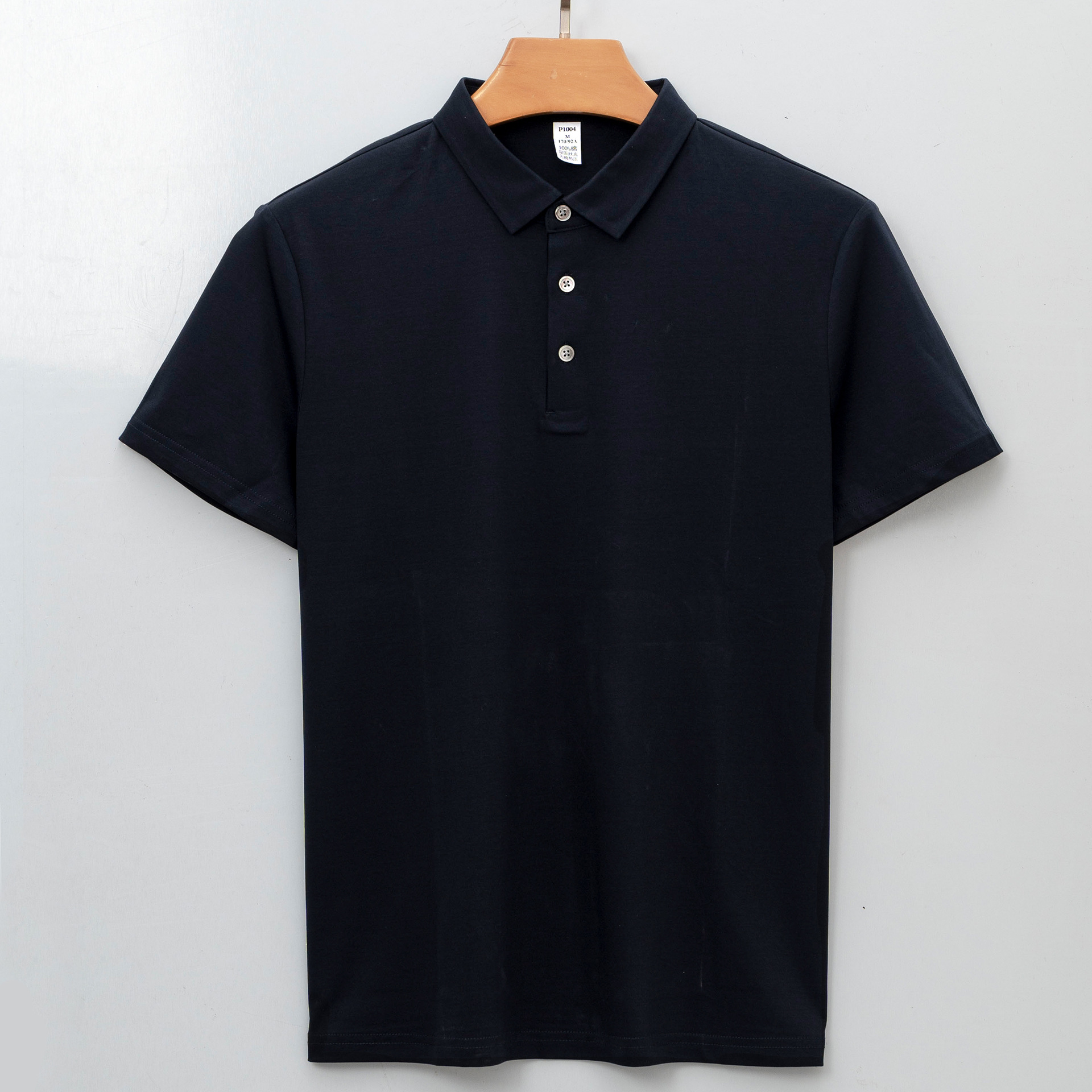 남성용 하이 엔드 120 양면 머서리화 코튼 폴로 셔츠 반팔 비 다림질 긴면 티셔츠 핫 프레스 이음매없는 칼라 폴로 셔츠
