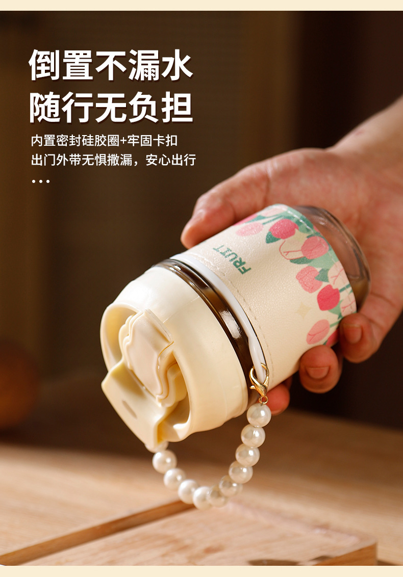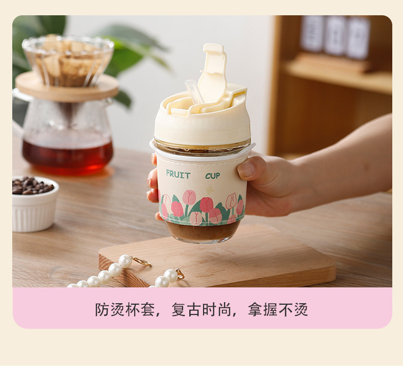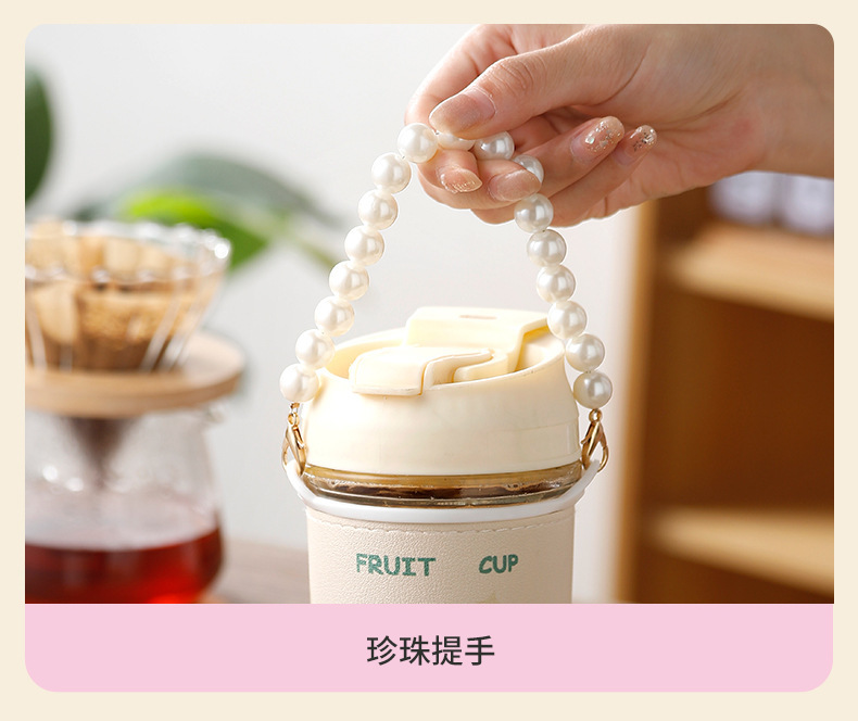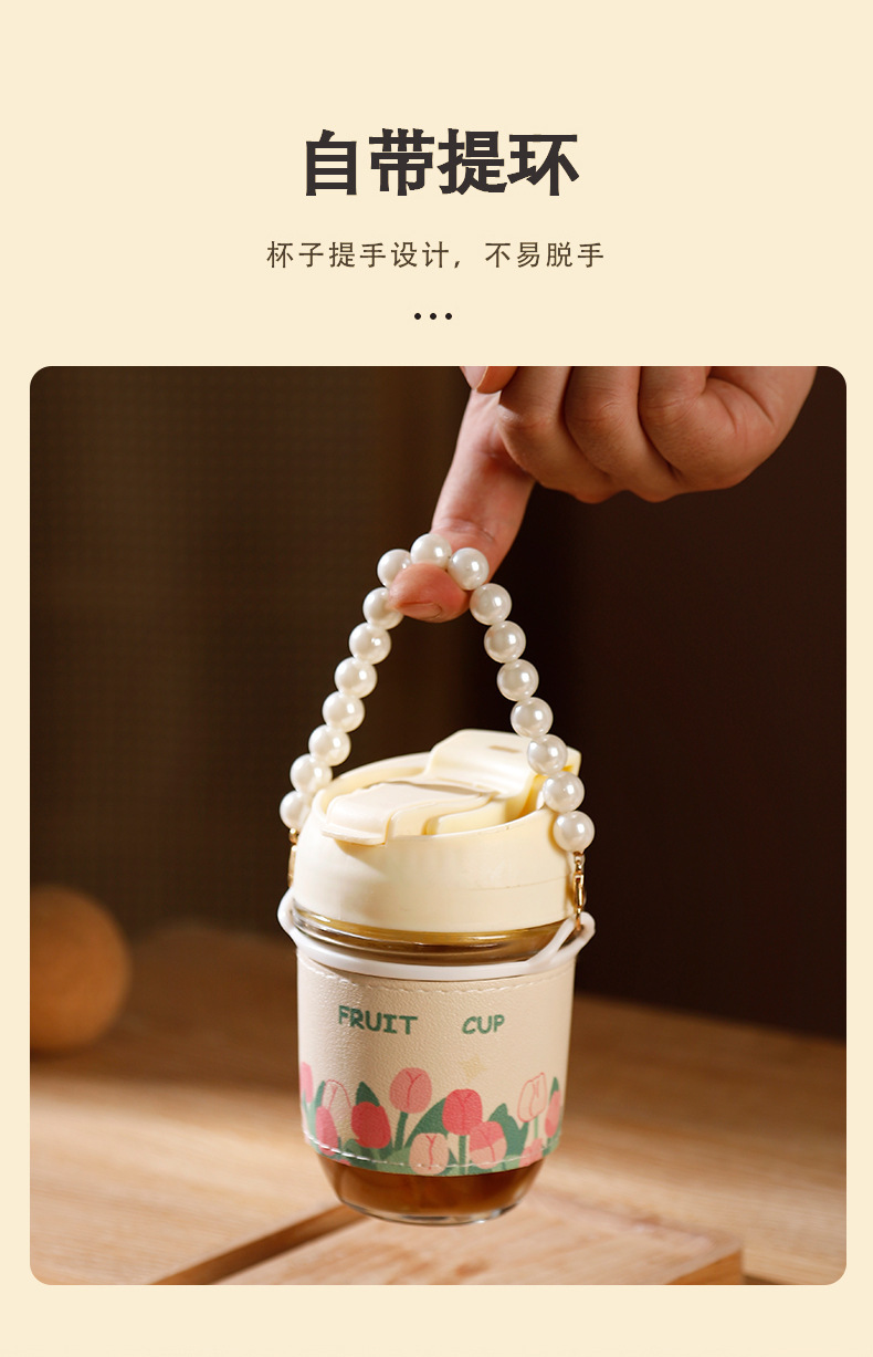 여름 유리컵, 빨대컵, 선물용 물컵, 여자아이들을 위한 커피컵, 더블컵, 기념품, 인터넷 인기 진주컵, 주스컵스토어 가기