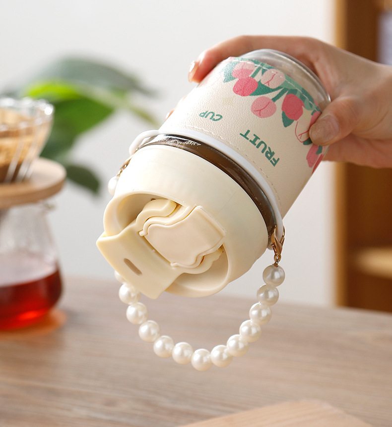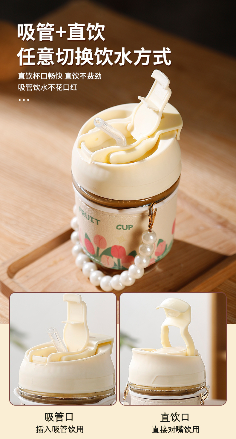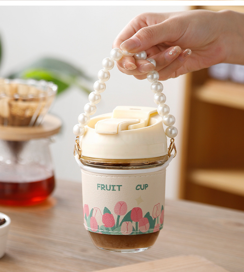 여름 유리컵, 빨대컵, 선물용 물컵, 여자아이들을 위한 커피컵, 더블컵, 기념품, 인터넷 인기 진주컵, 주스컵