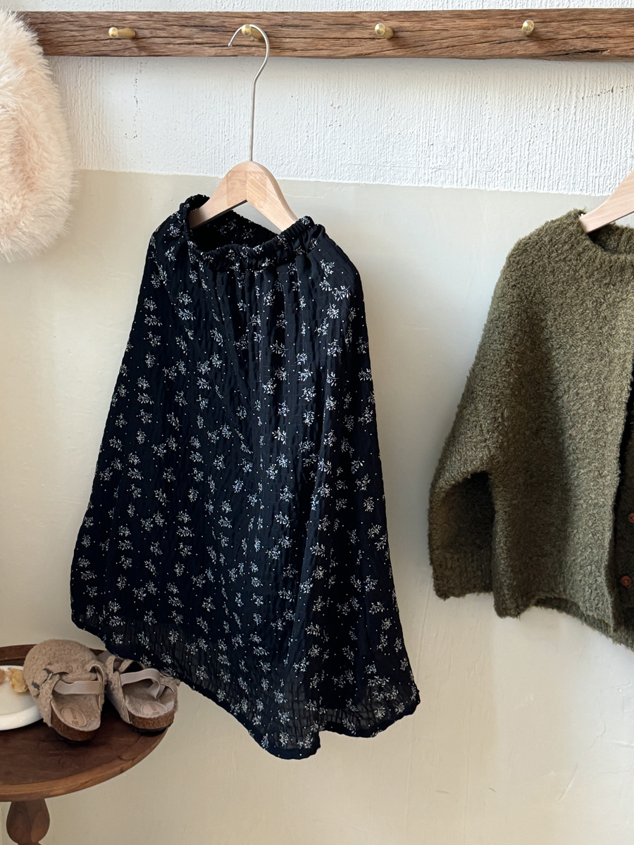 2024 년 겨울 새 아동복 여아 탈래식 미디 A 라인 스커트 어린이 검은 꽃 시폰 긴 치마