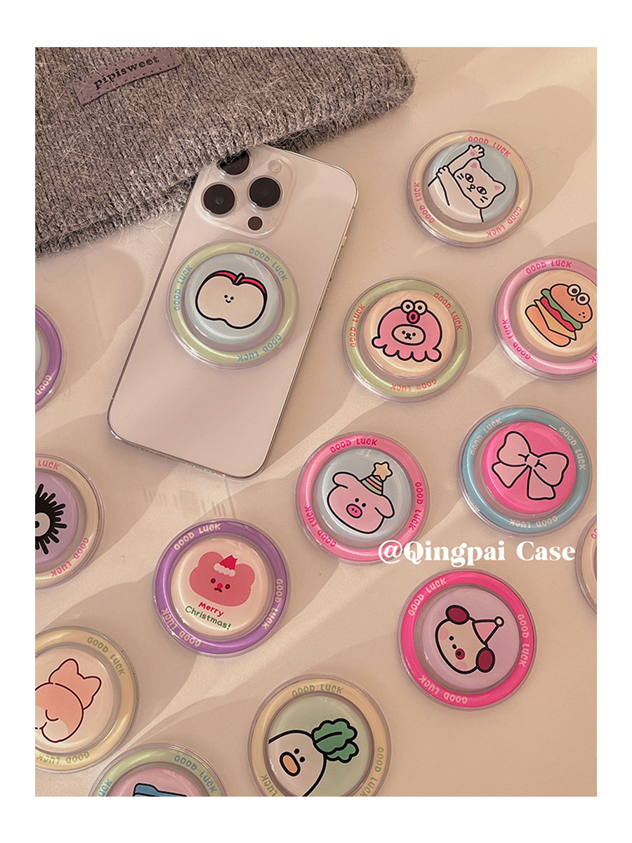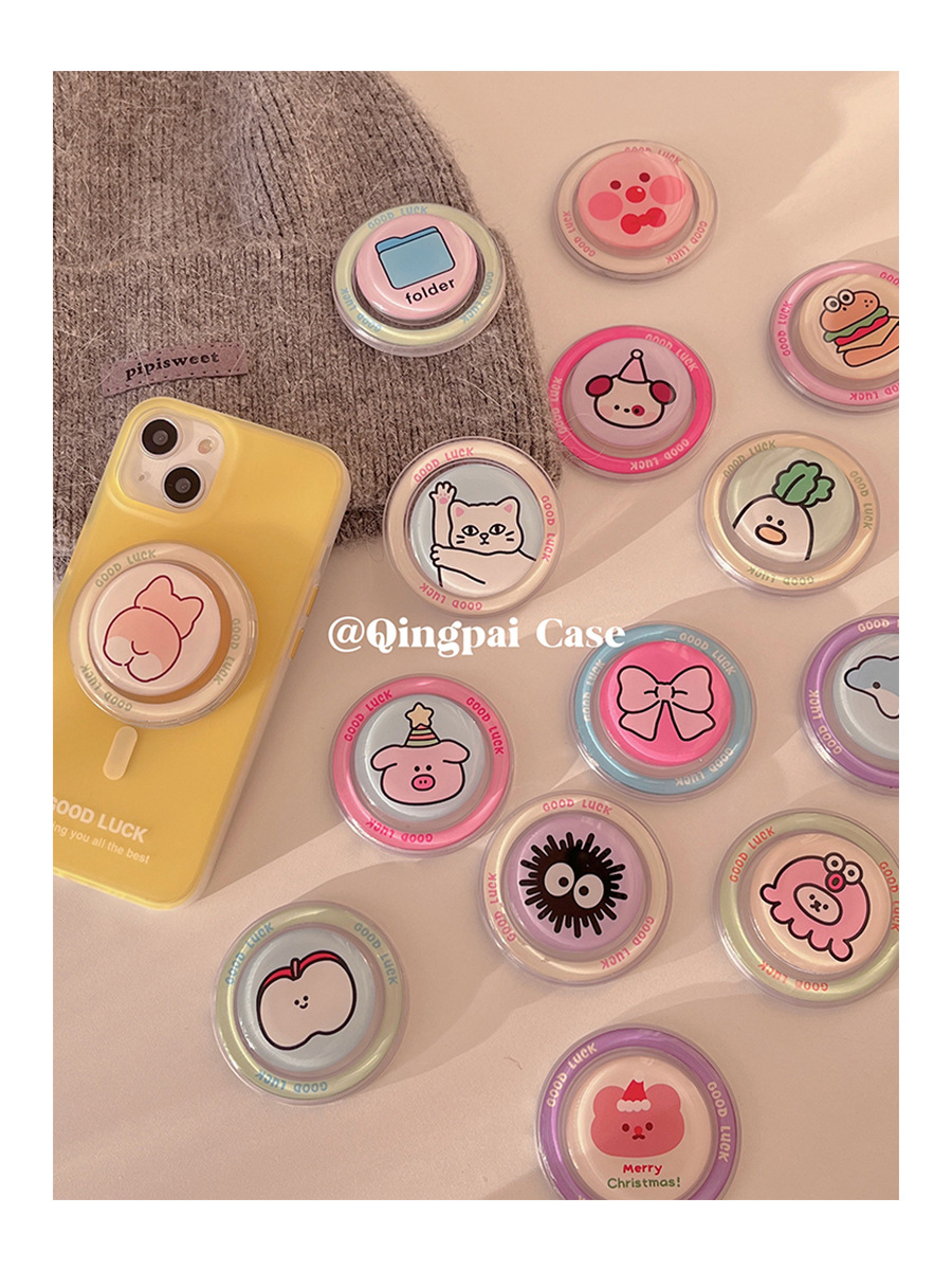 닥스 훈트 귀여운 디스크 만화 여성의 드롭 접착제 마그네틱 휴대 전화 브래킷 Magsafe 에어백 접이식 텔레스코픽 브래킷