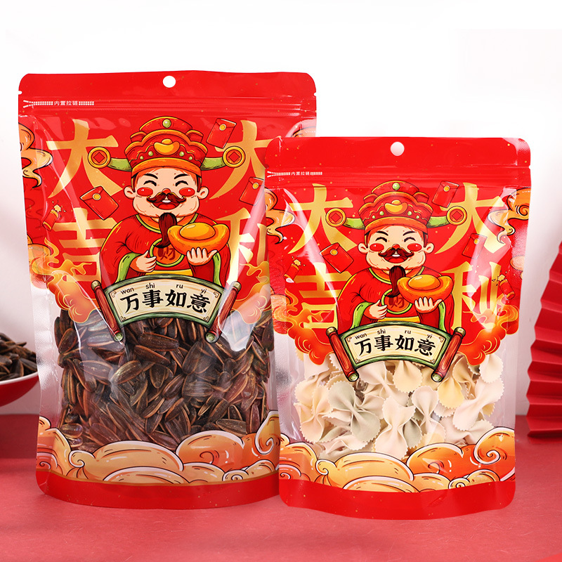 새해 상품 포장 가방 그랜드 게달리 포장 가방 축제 붉은 새해 꽃 생 멜론 씨앗 비스킷 밀봉 셀프 밀봉 가방스토어 가기