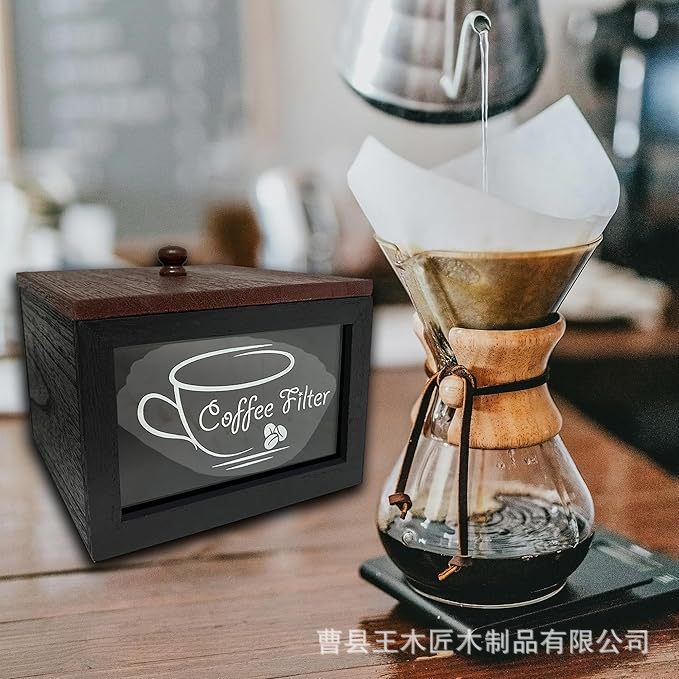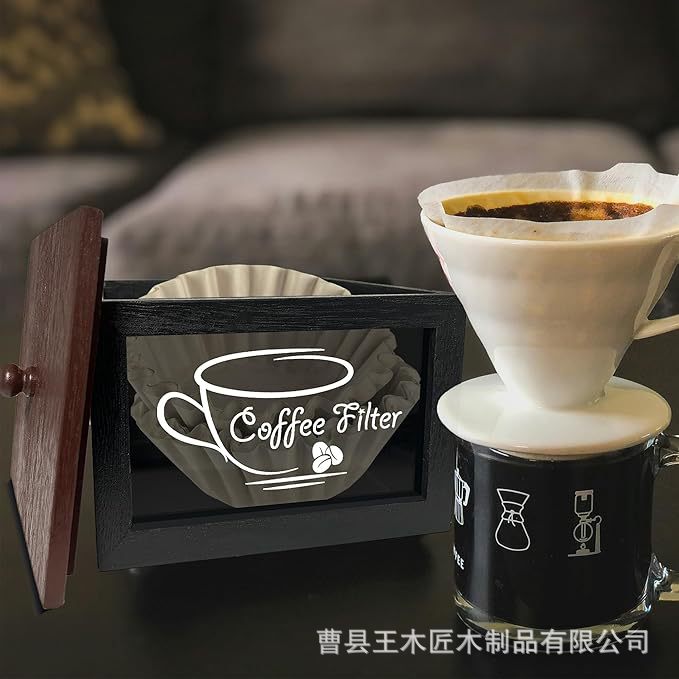 나무 커피 필터 저장 상자 나무 커피 바 액세서리 저장 상자 커피 필터 종이 저장 상자 컵 홀더스토어 가기