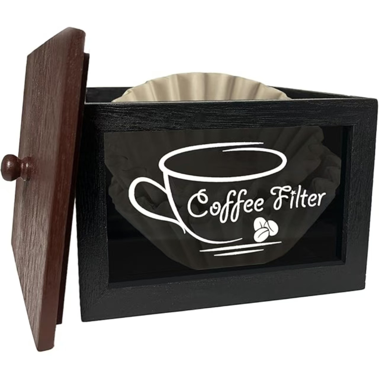 나무 커피 필터 저장 상자 나무 커피 바 액세서리 저장 상자 커피 필터 종이 저장 상자 컵 홀더