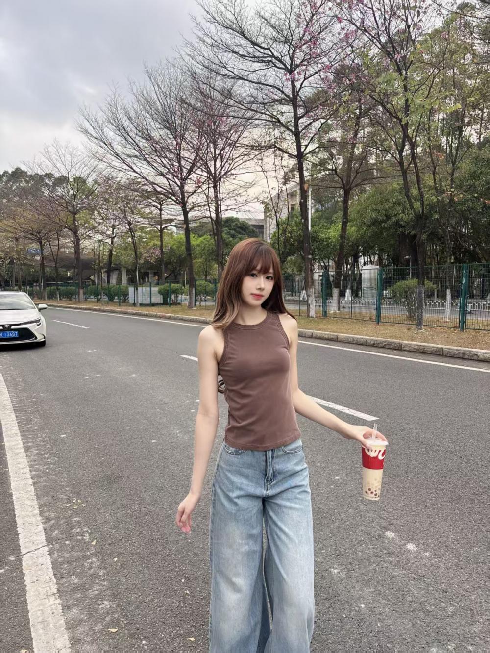 여자 조끼 2024 사계절 미니멀리스트 조커 솔리드 컬러 스레드 스포츠 레저 매일 보텀핑 아우터웨어 봄과 여름스토어 가기