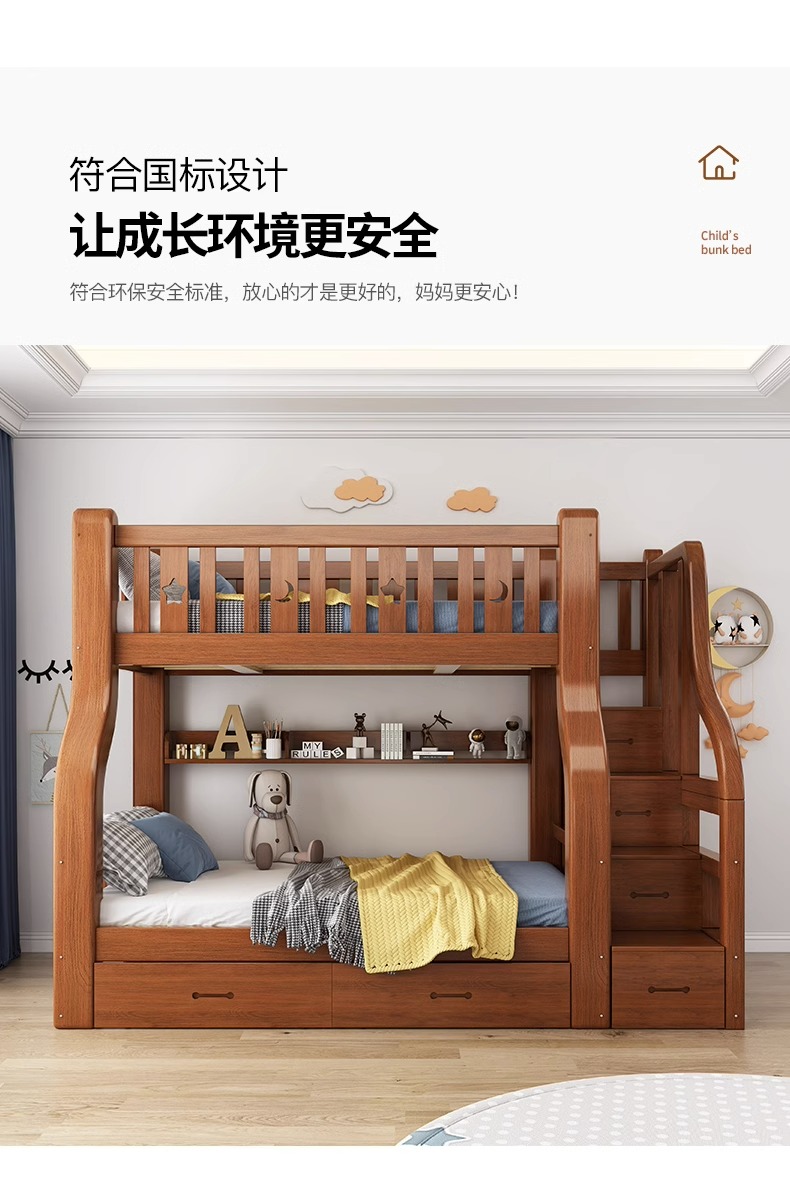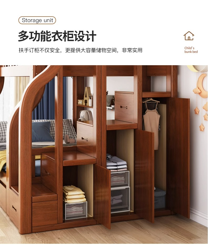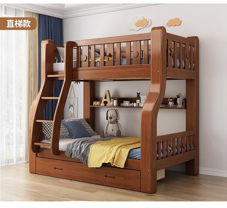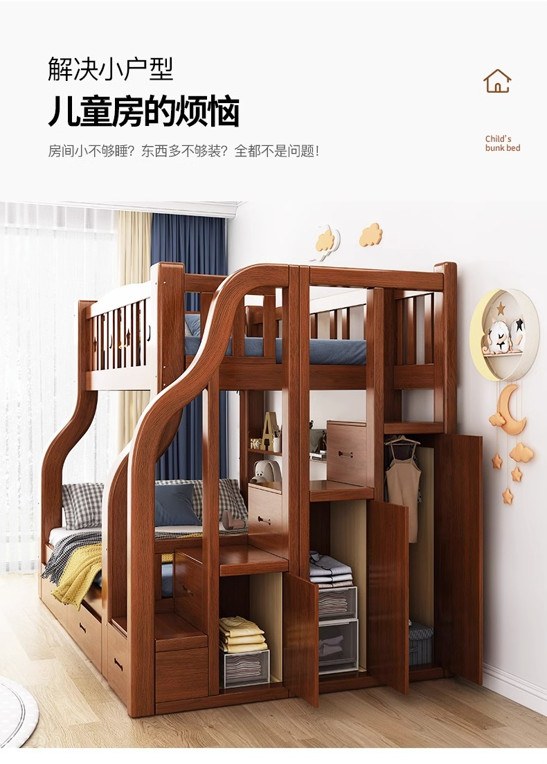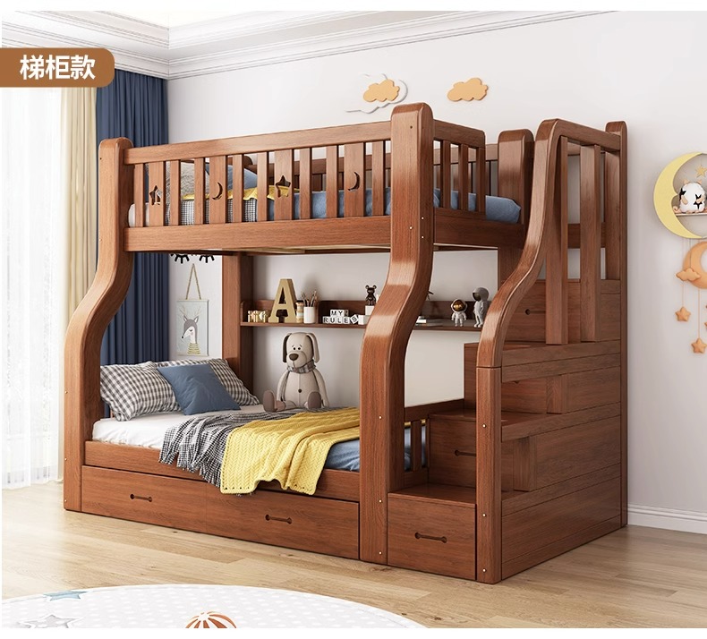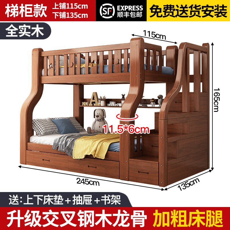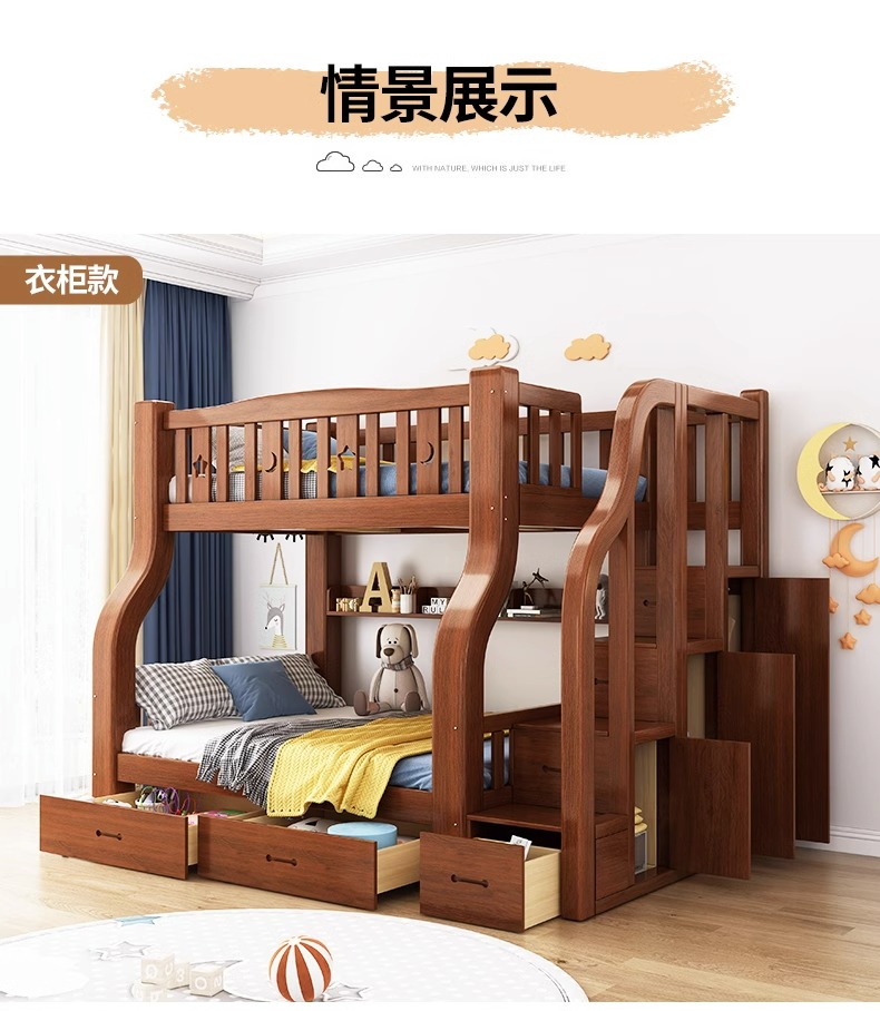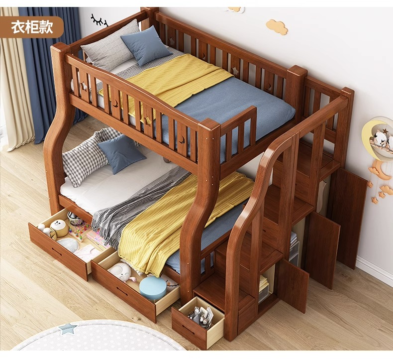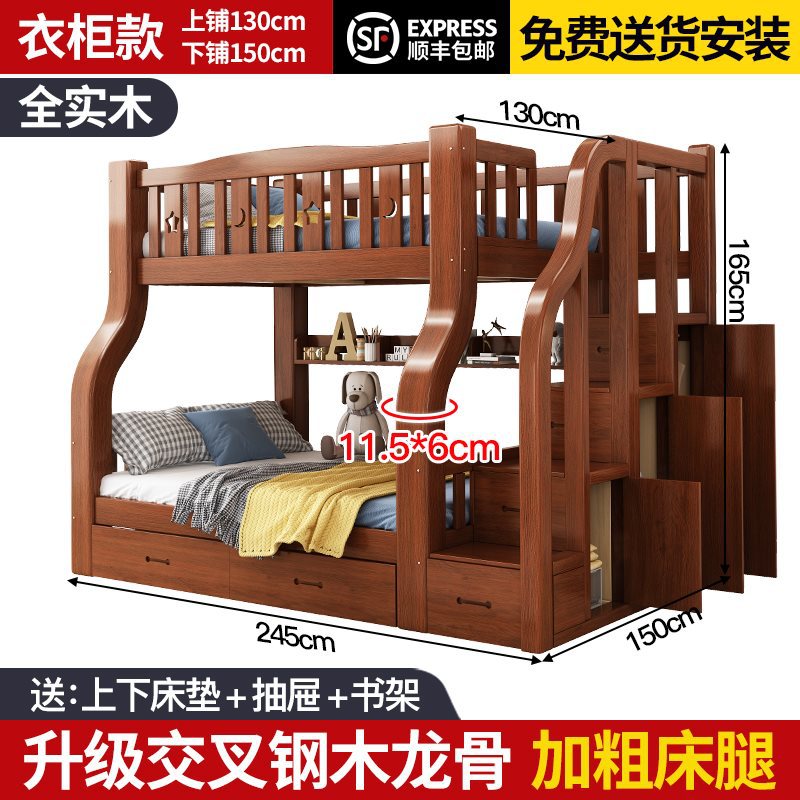 단단한 나무 벙크 침대 2 층 침대 높고 낮은 침대 더블 침대 침대 이층 침대 다기능 옷장 어린이 침대