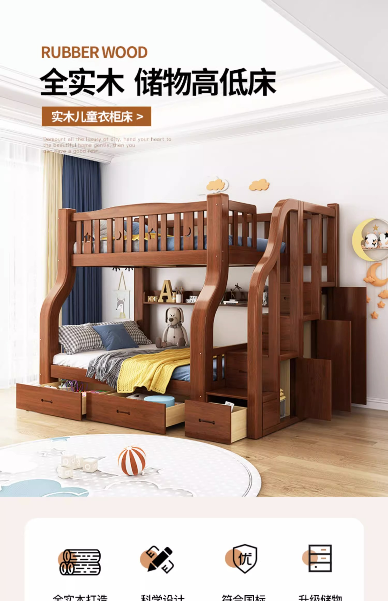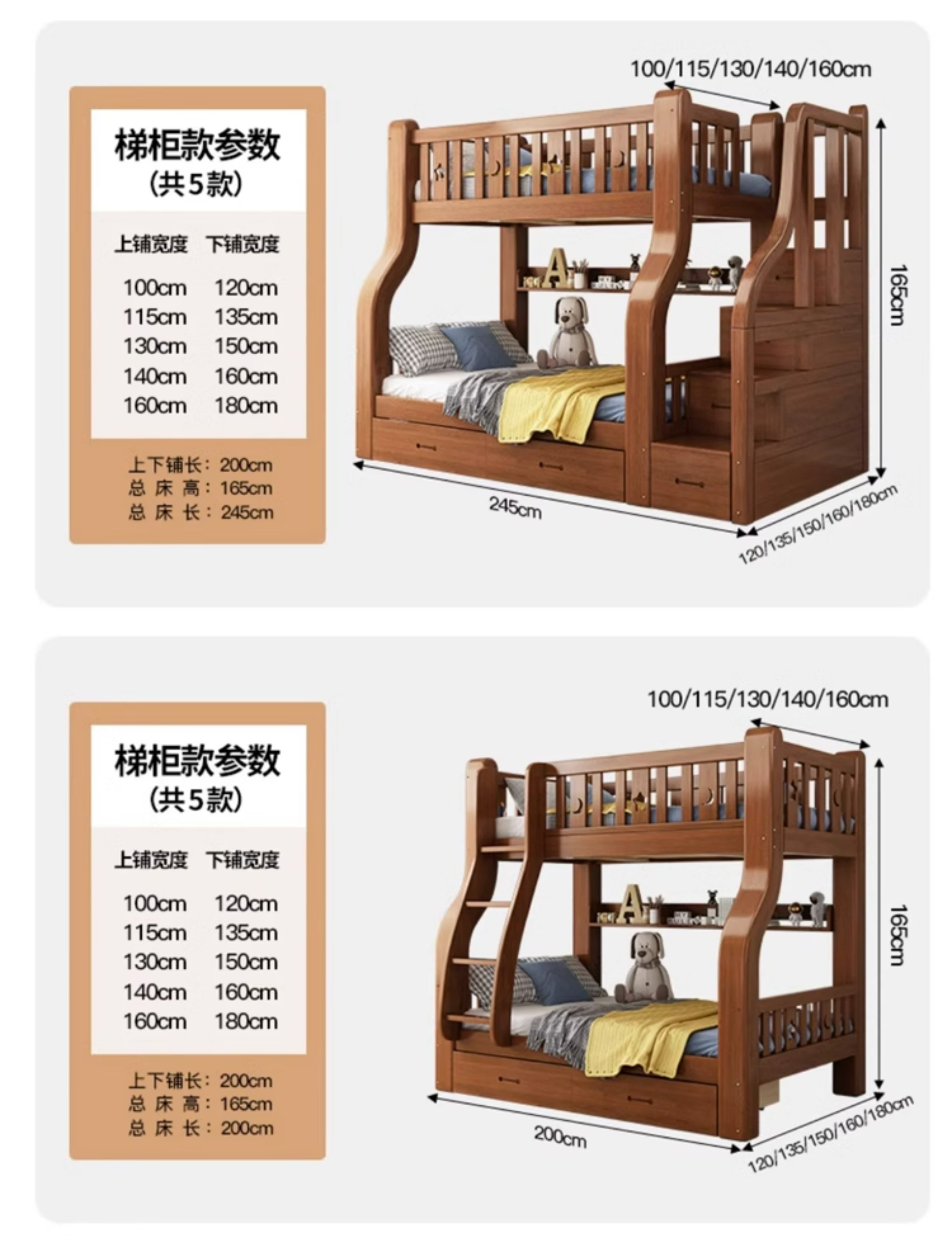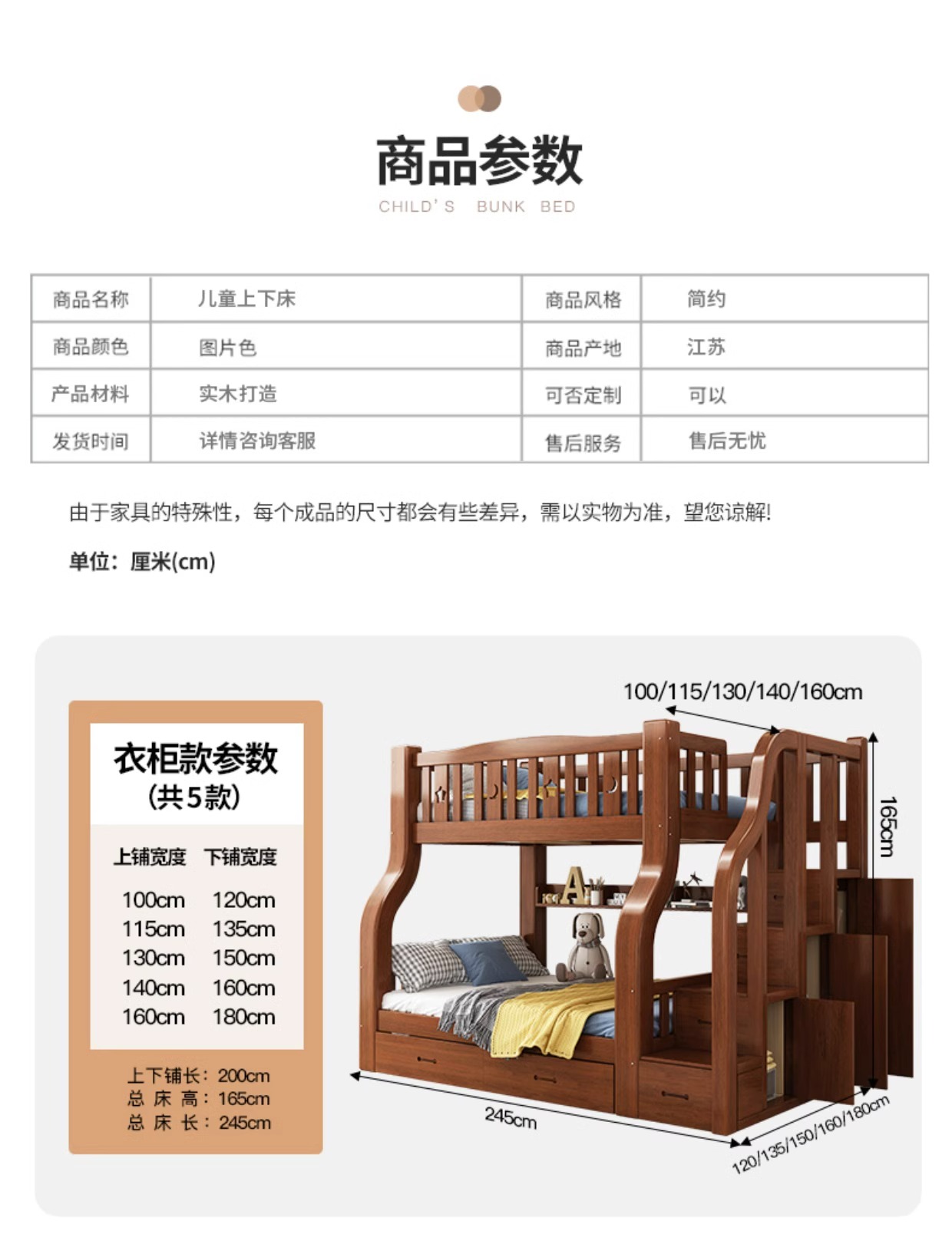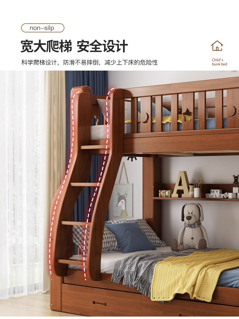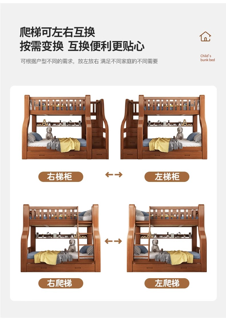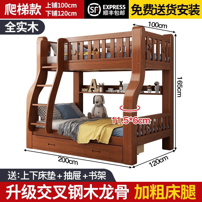 단단한 나무 벙크 침대 2 층 침대 높고 낮은 침대 더블 침대 침대 이층 침대 다기능 옷장 어린이 침대