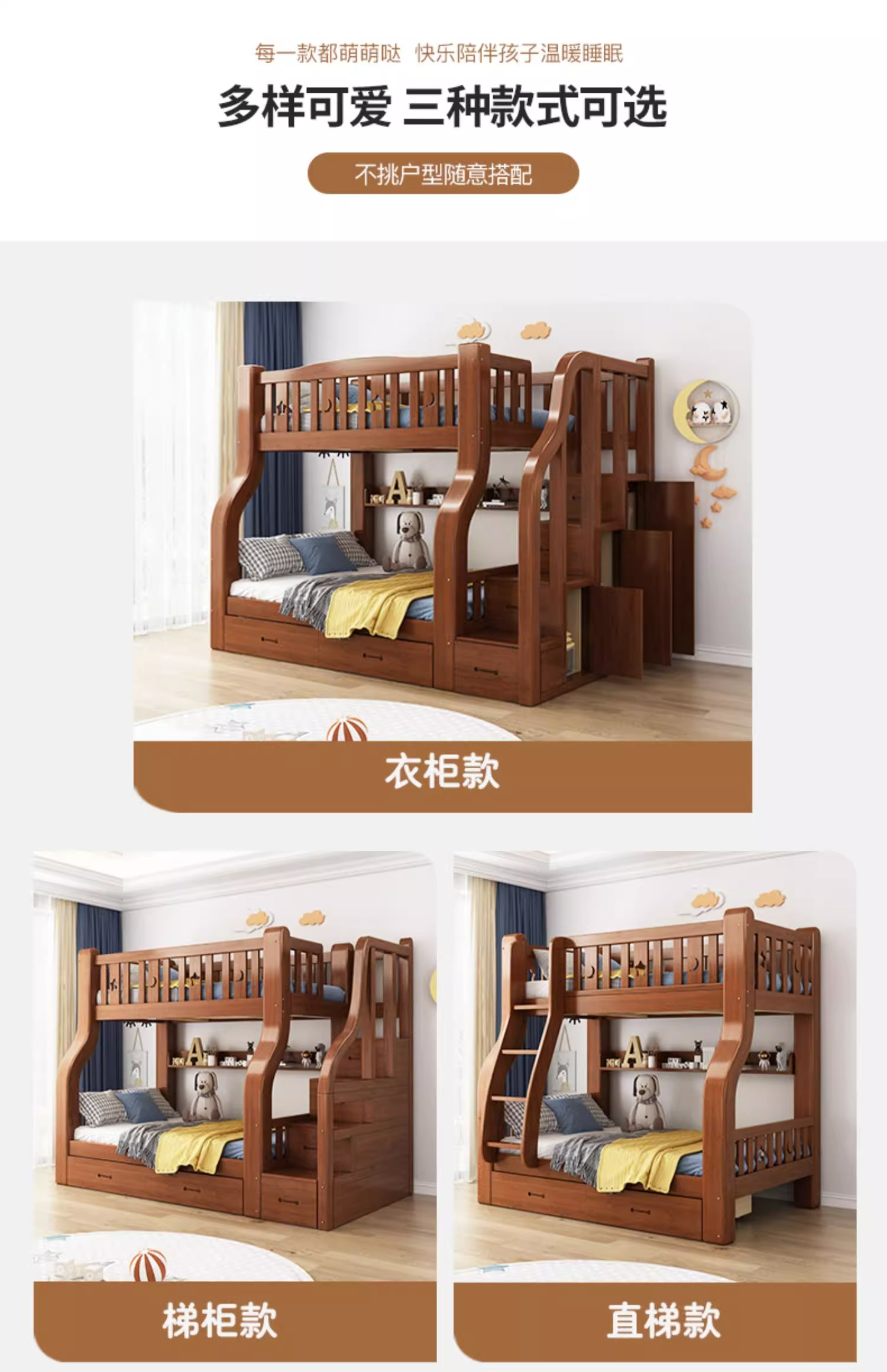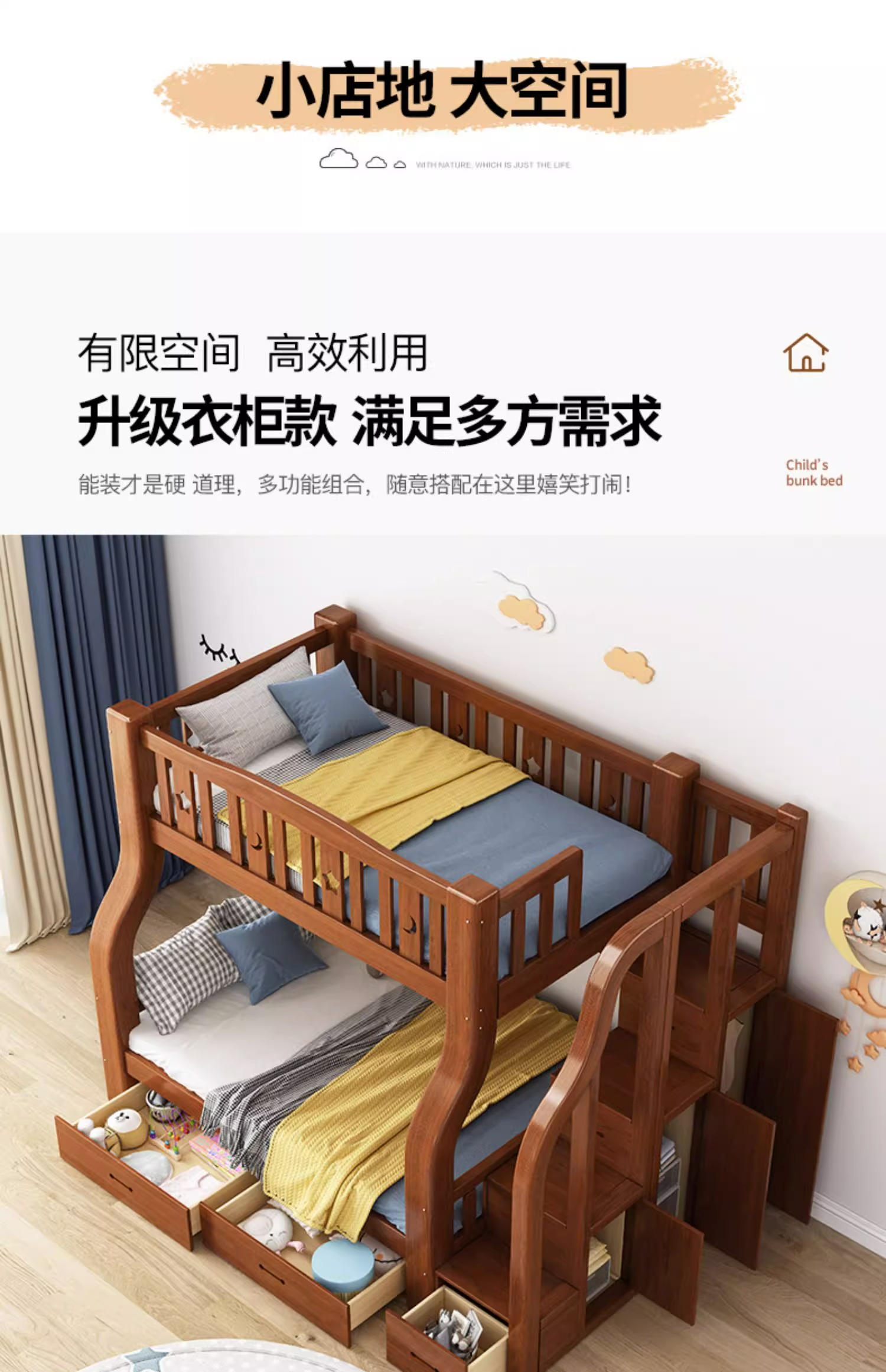 단단한 나무 벙크 침대 2 층 침대 높고 낮은 침대 더블 침대 침대 이층 침대 다기능 옷장 어린이 침대스토어 가기