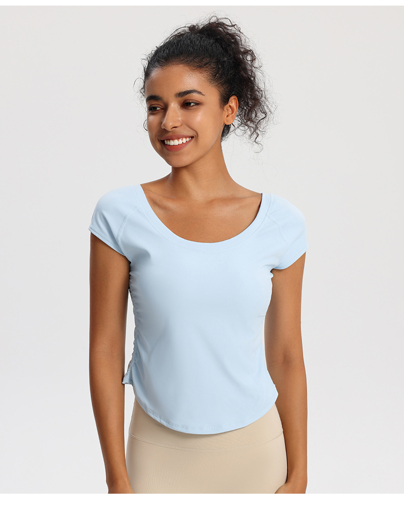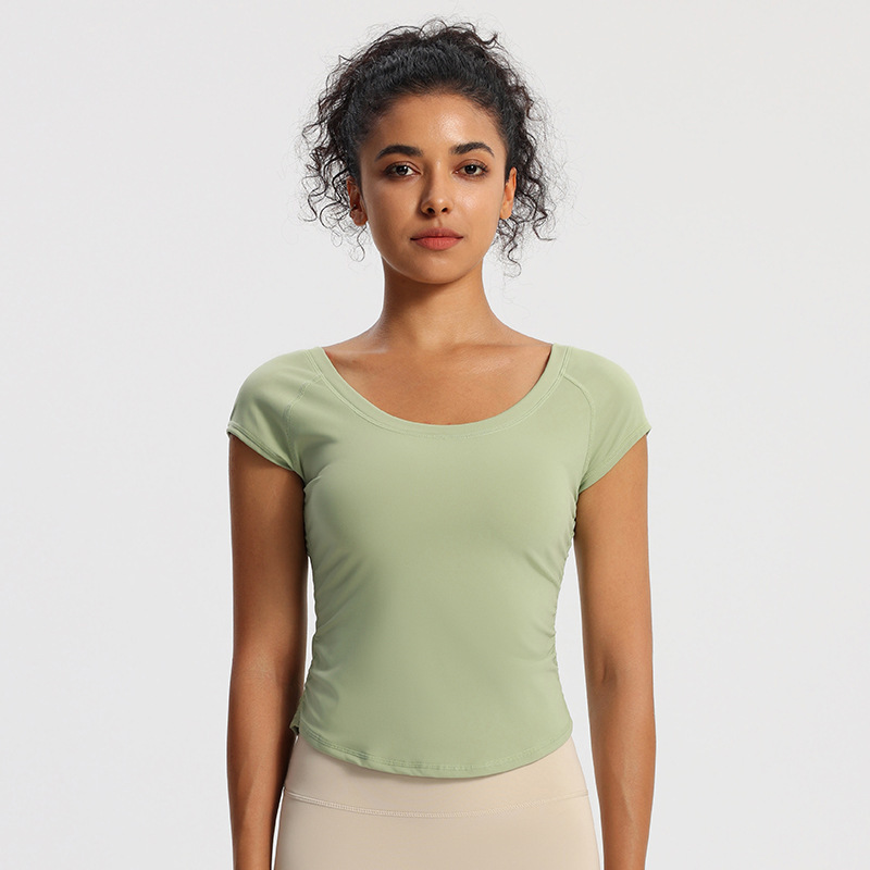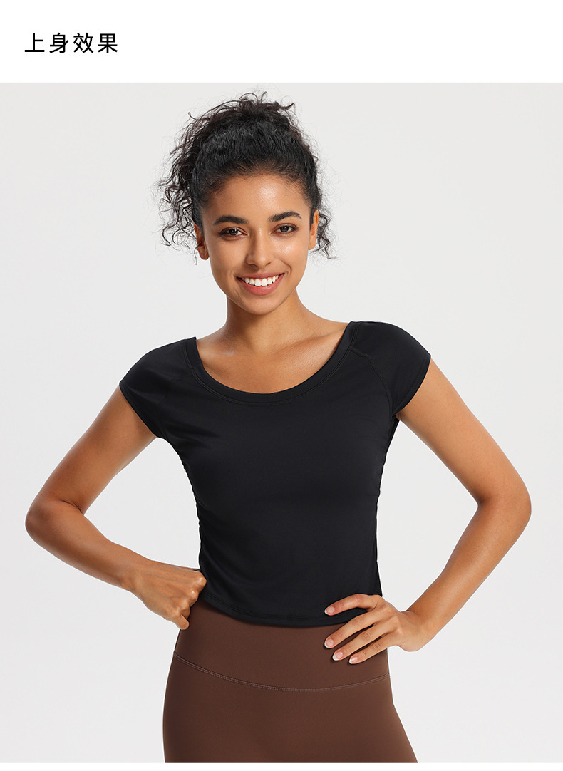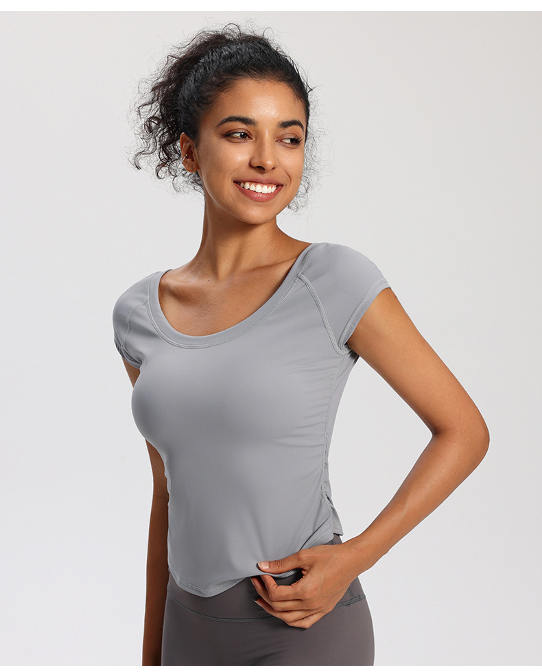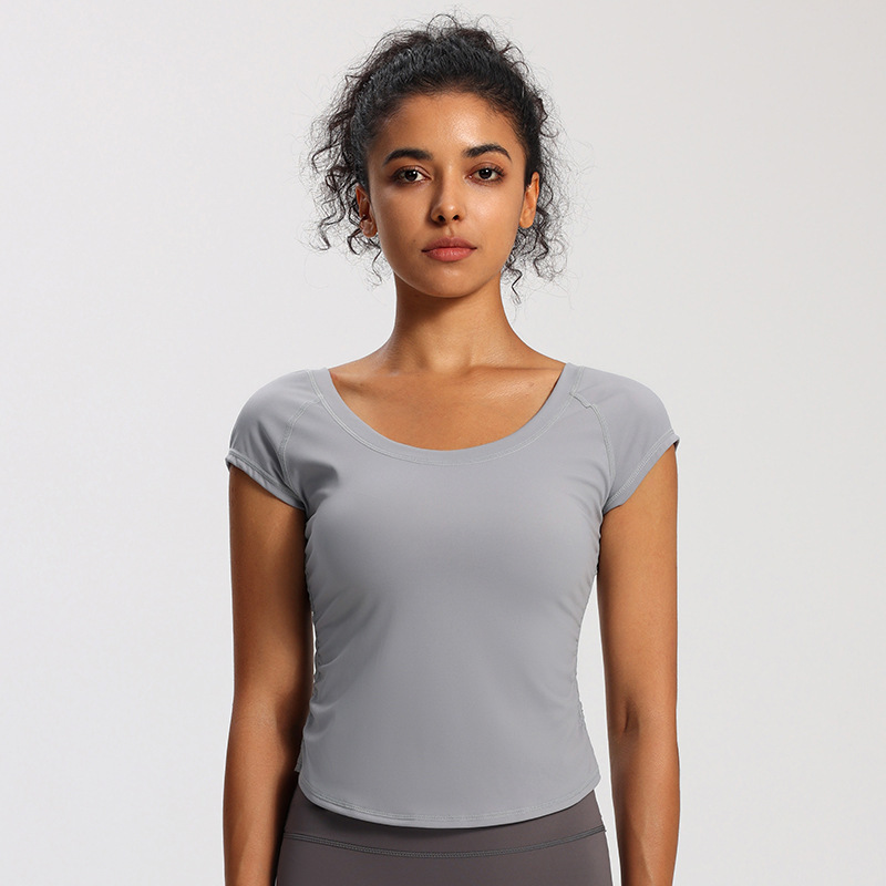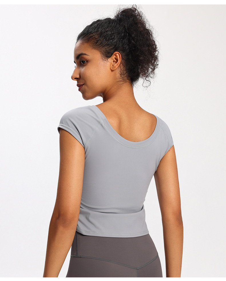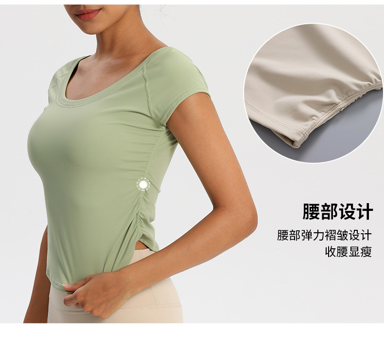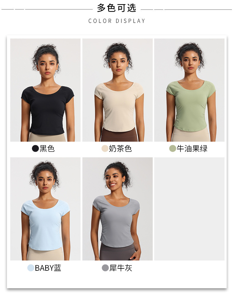 스포츠 탑 여성의 스트레치 타이트 반팔 퀵 드라이 옷 슬림 달리기 통기성 웨이스트 코트 피트니스 티셔츠 요가 옷
