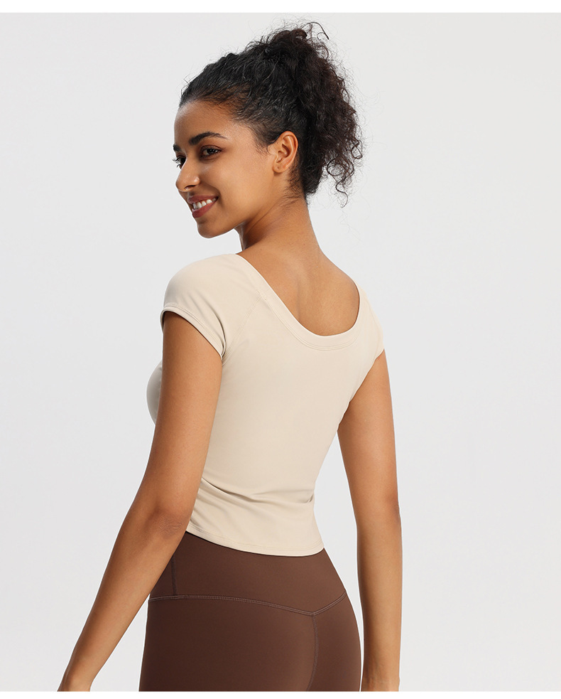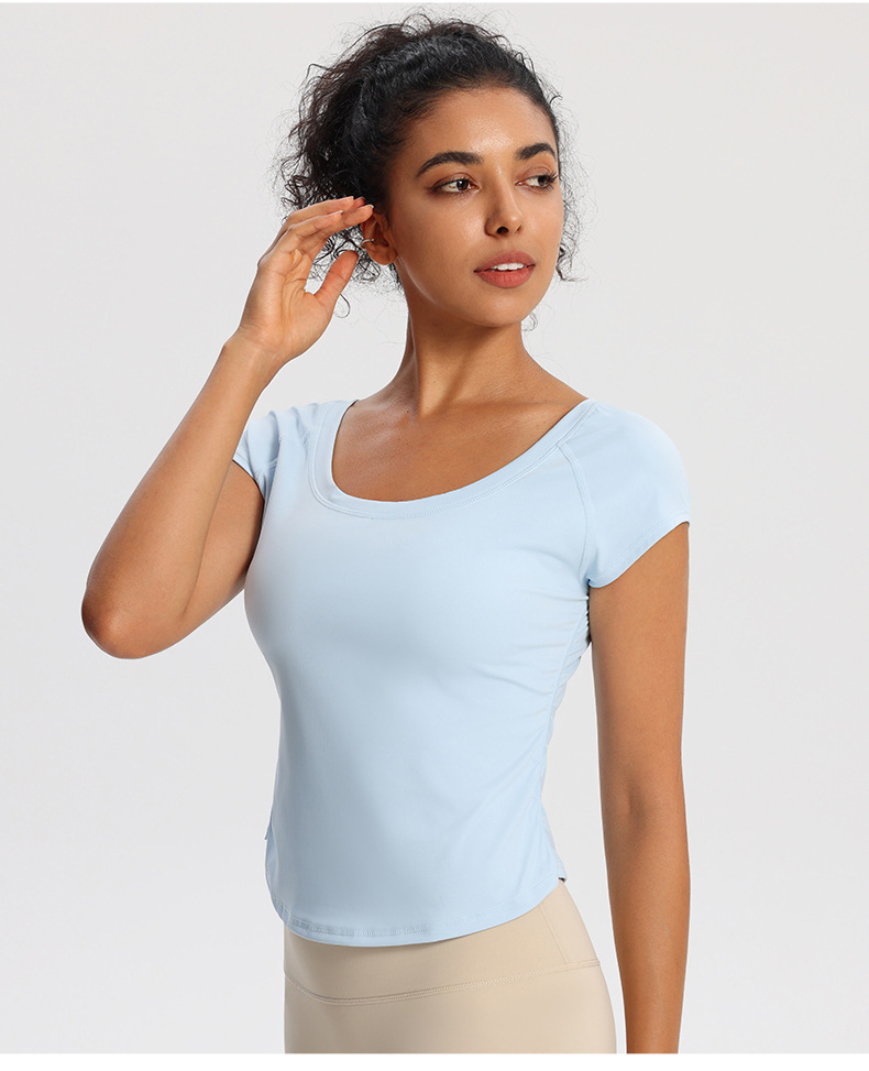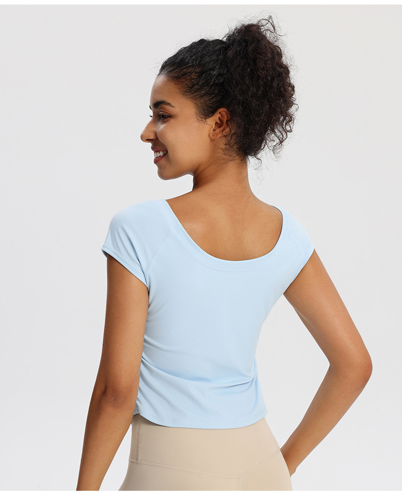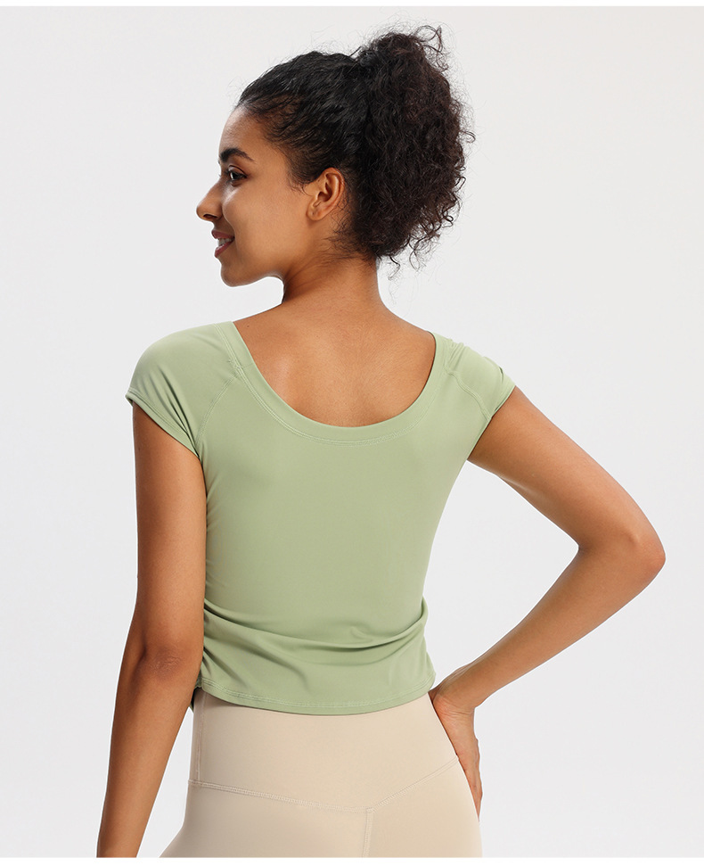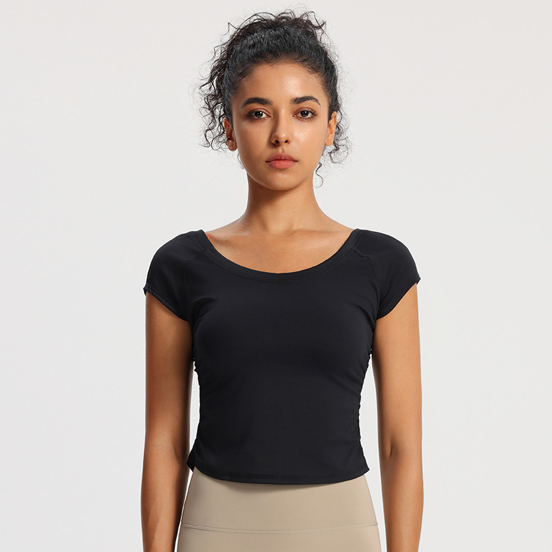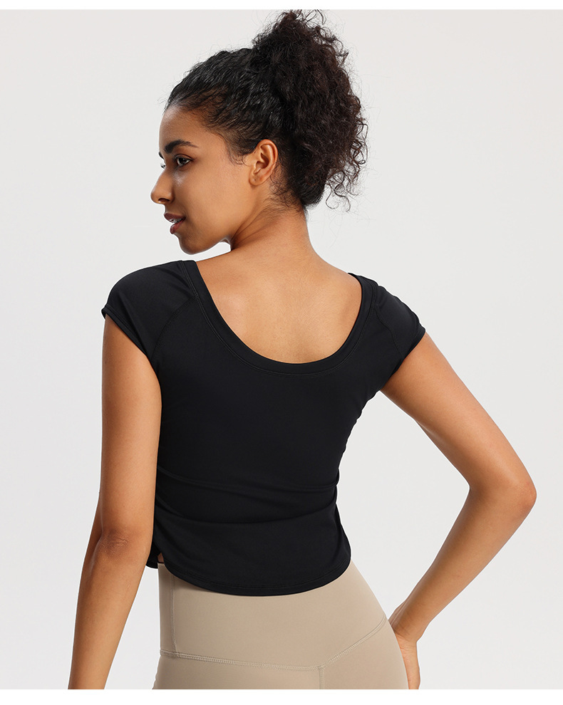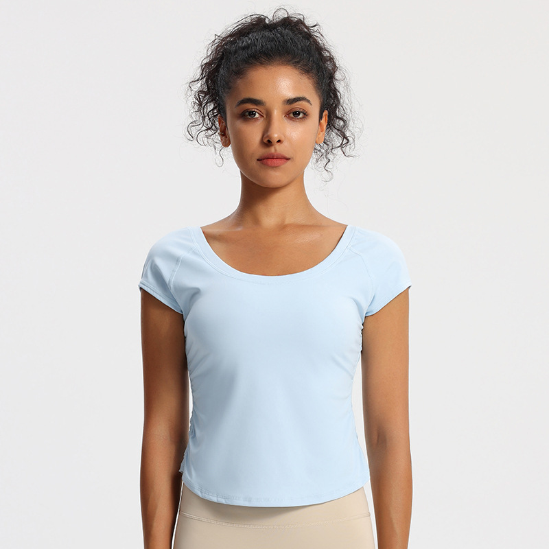 스포츠 탑 여성의 스트레치 타이트 반팔 퀵 드라이 옷 슬림 달리기 통기성 웨이스트 코트 피트니스 티셔츠 요가 옷