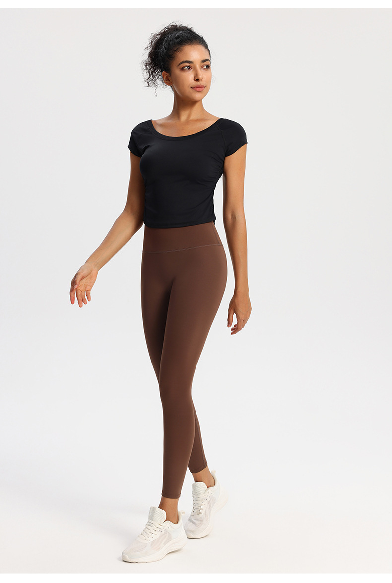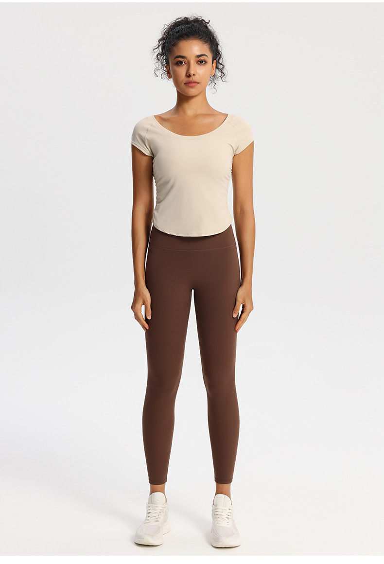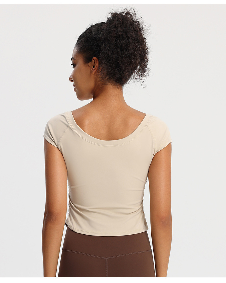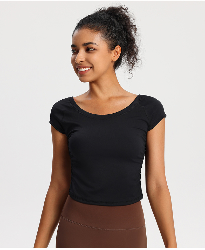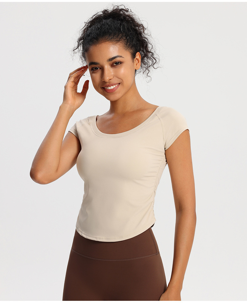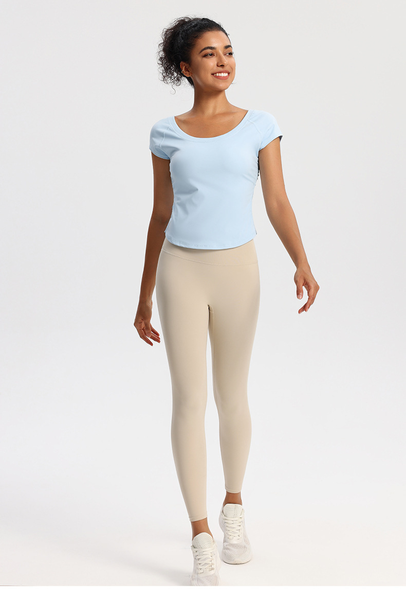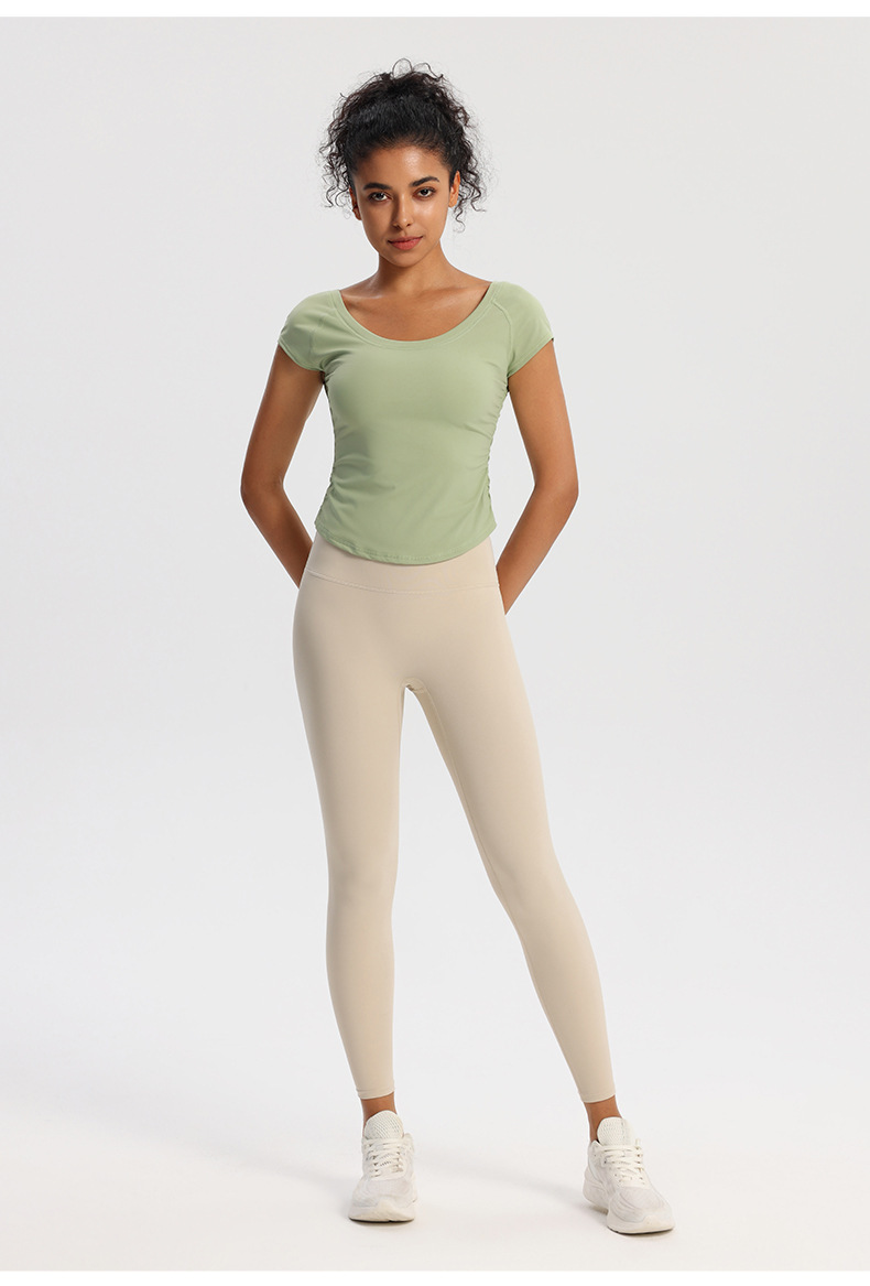 스포츠 탑 여성의 스트레치 타이트 반팔 퀵 드라이 옷 슬림 달리기 통기성 웨이스트 코트 피트니스 티셔츠 요가 옷