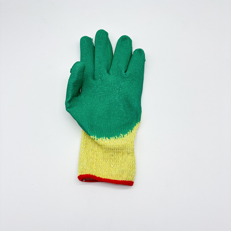 • 녹색 및 노란색 가장자리가 있는 면 주름 장갑(기본적으로 상표가 있습니다. 상표가 없는 경우 참고하세요)