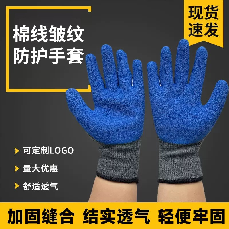 접착제 코팅 노동 장갑 Ding Qing 라텍스는 내마모성 미끄럼 방지 장갑 공장 현장 내유성 및 내식성 장갑 도매스토어 가기