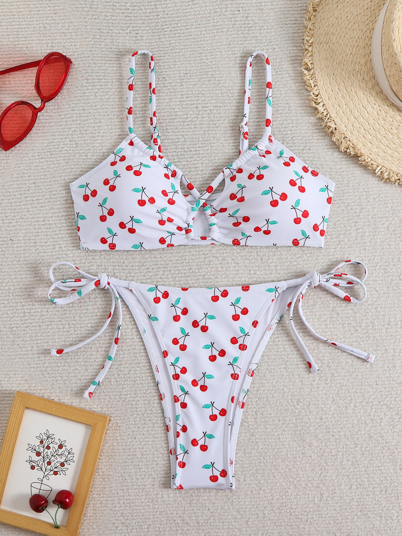 유럽과 미국의 국경 2025 새로운 수영복 여성 Ins 스타일 섹시한 레이스 업 인쇄 비키니 수영복 비키니 재고