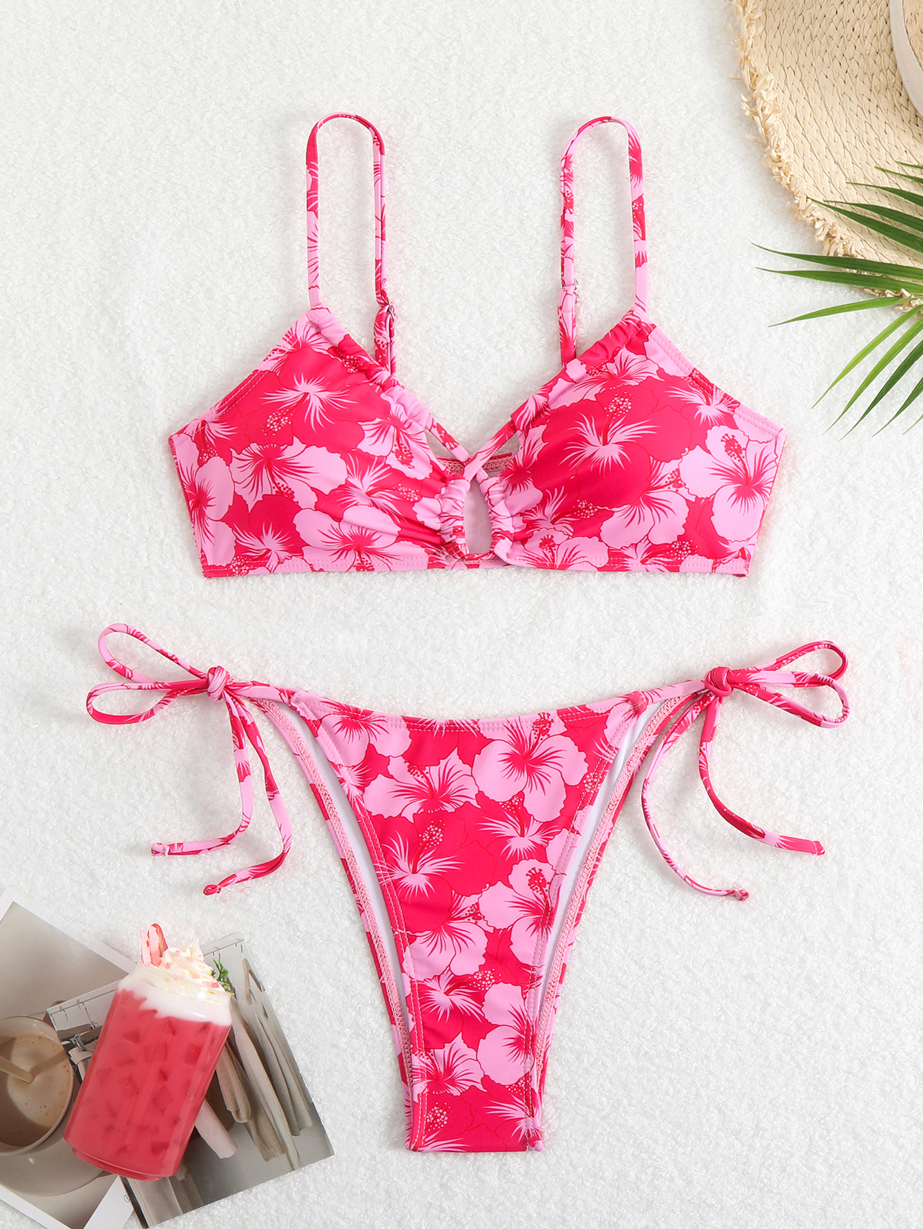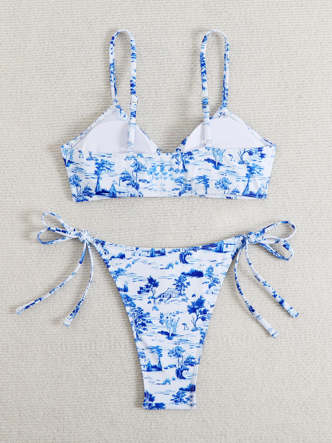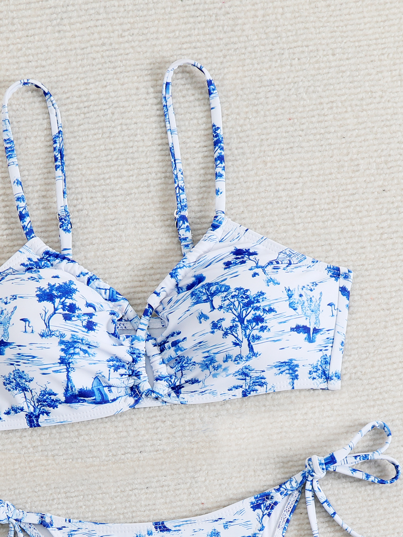 유럽과 미국의 국경 2025 새로운 수영복 여성 Ins 스타일 섹시한 레이스 업 인쇄 비키니 수영복 비키니 재고스토어 가기