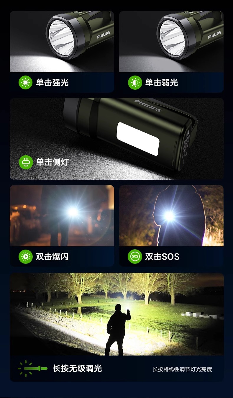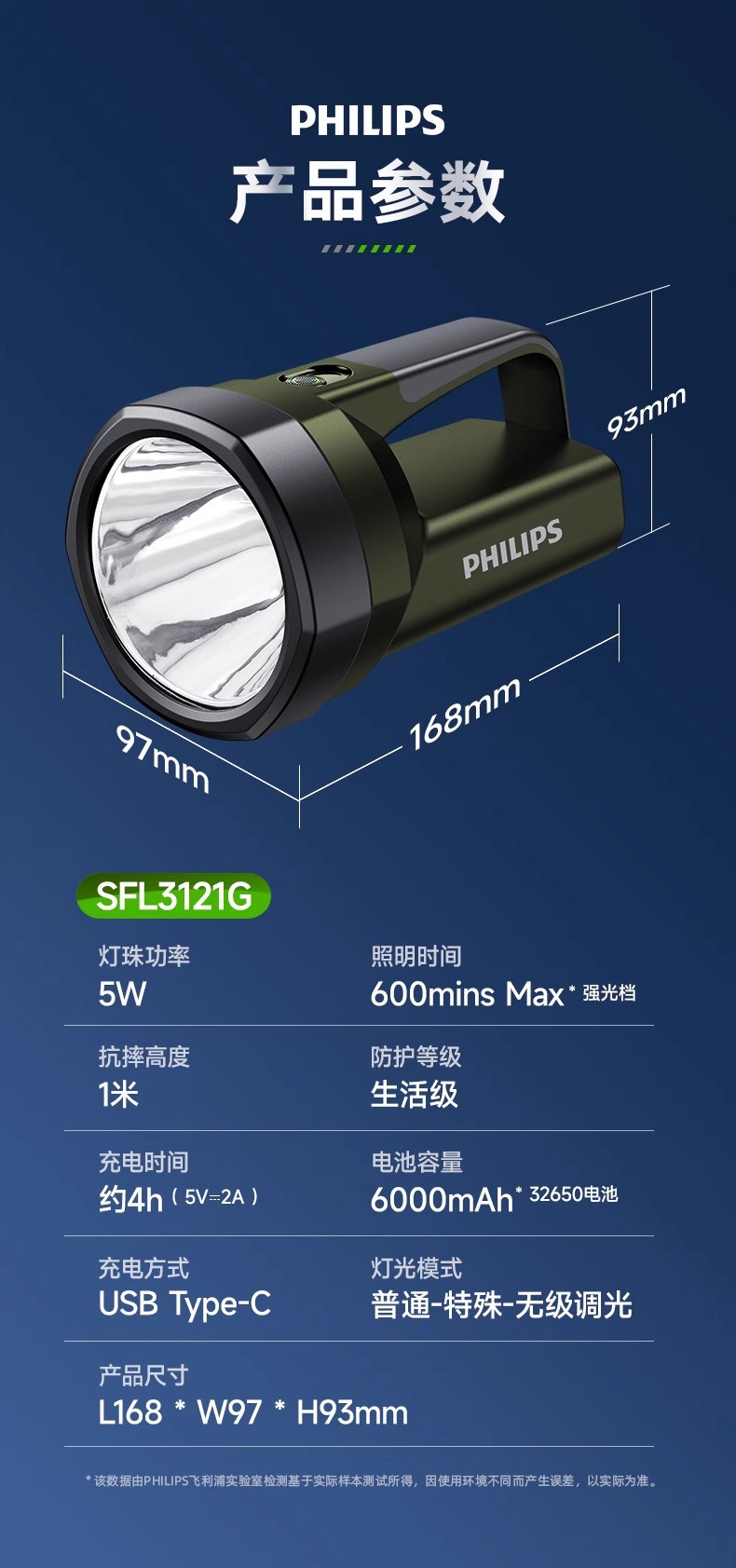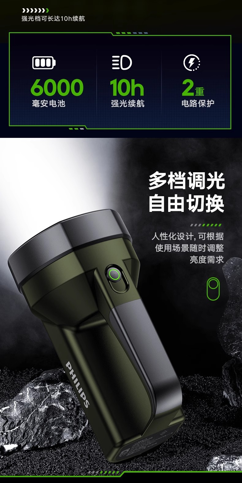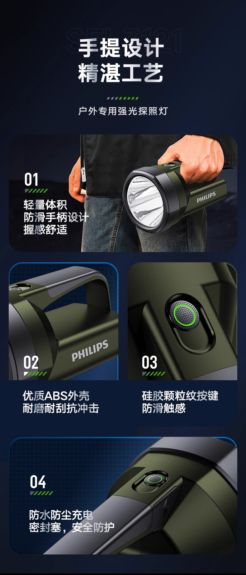 필립스 서치 3121G 손전등 홈 야외 보물 긴 내구성 강한 빛 휴대용 엔지니어링 램프