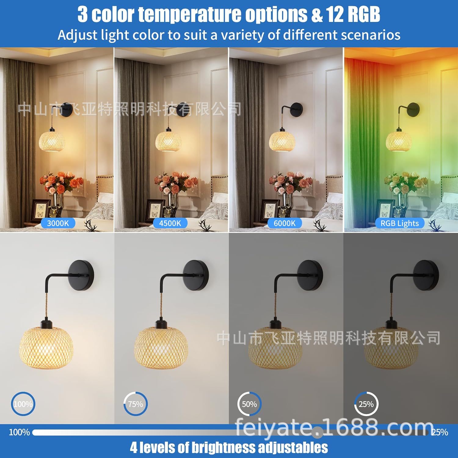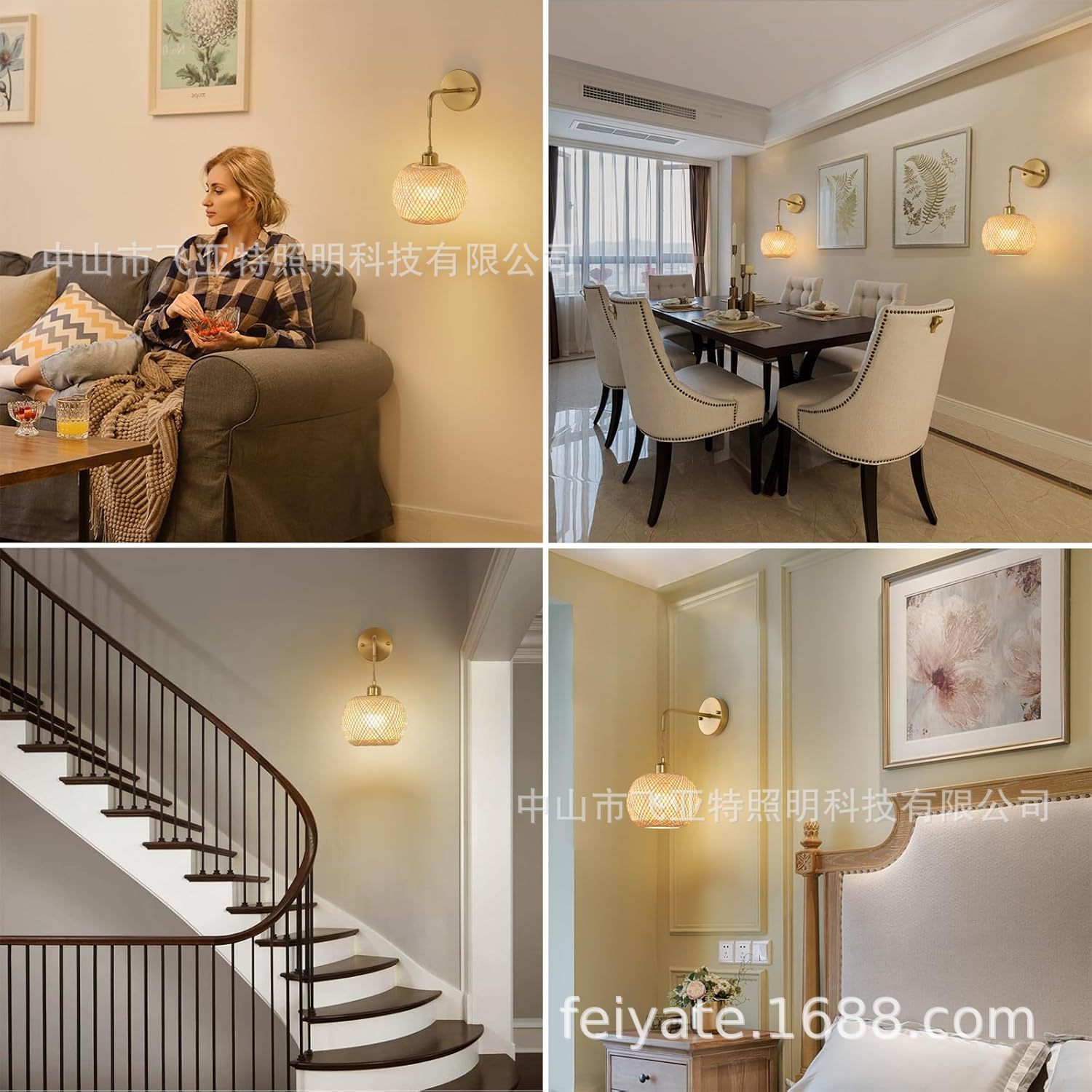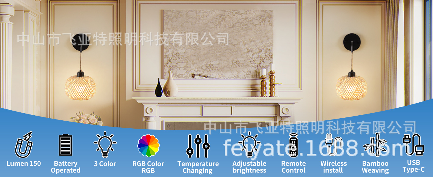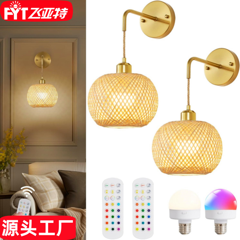 국경 간 Amazon 맞춤형 일본식 배선없는 대나무 침실 머리맡 벽 램프 거실 골드 무선 충전 벽 램프스토어 가기