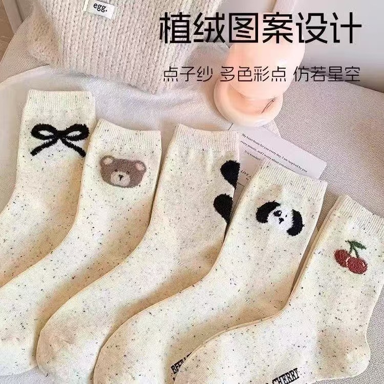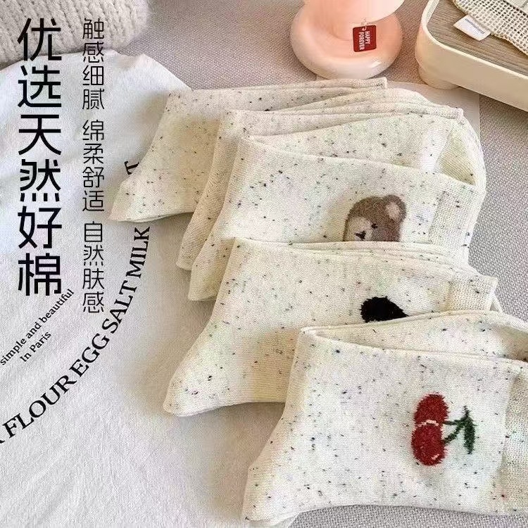 캔디 양말 어린이 미드 튜브 포인트 원사 순수 코튼 미드 튜브 양말 한국 만화 베어 일본 컬러 포인트 양말스토어 가기