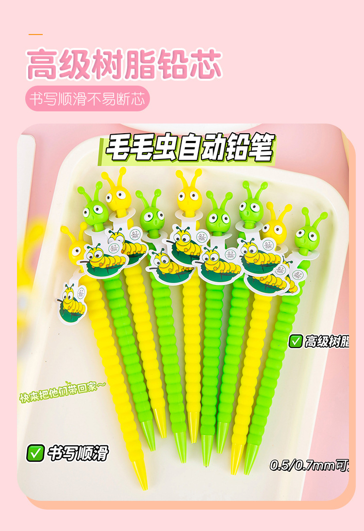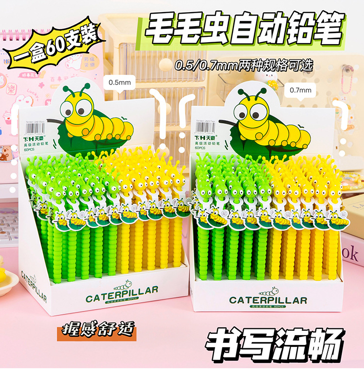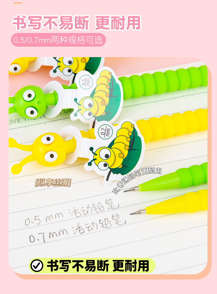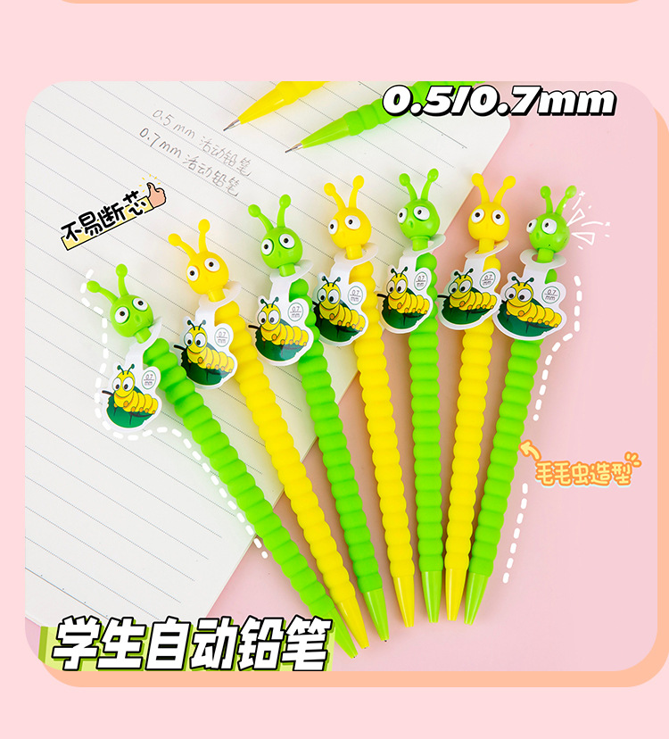 새로운 만화 창조적 인 애벌레 자동 연필 귀여운 소녀 심장 자동 연필 0.7 0.5 학생 선물스토어 가기