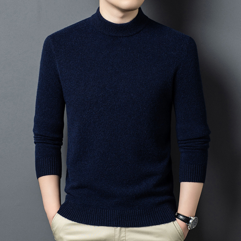 푸위안 양모 스웨터 남자 100 순수 양모 두꺼운 따뜻한 반 높이 목 겨울 착용 캐시미어 손 니트 베이스 스웨터
