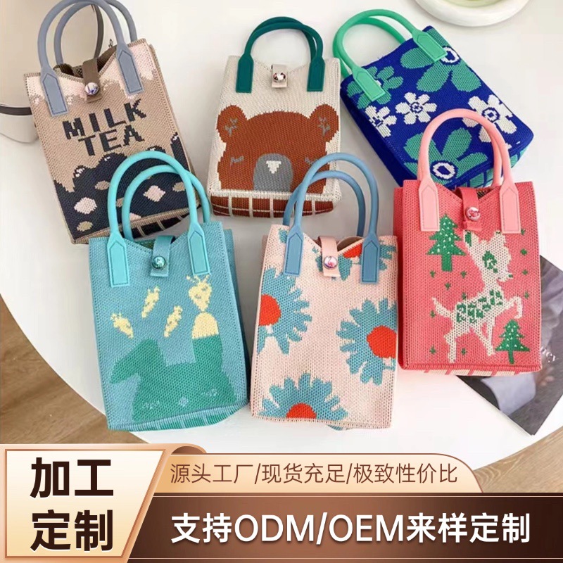 귀엽고 상큼한 여성용 크로스백, 니트백, 니트백, 핸드폰가방, 학생 숄더백, 니트 핸드백스토어 가기