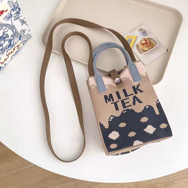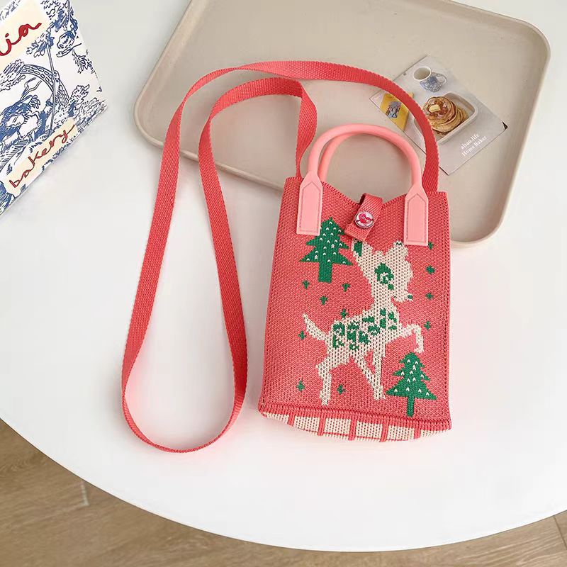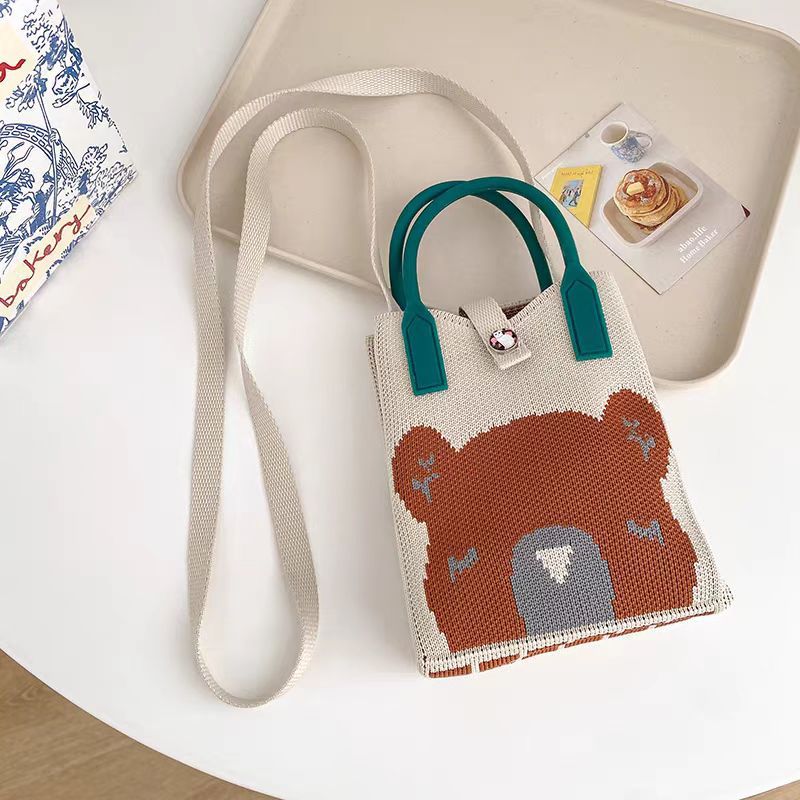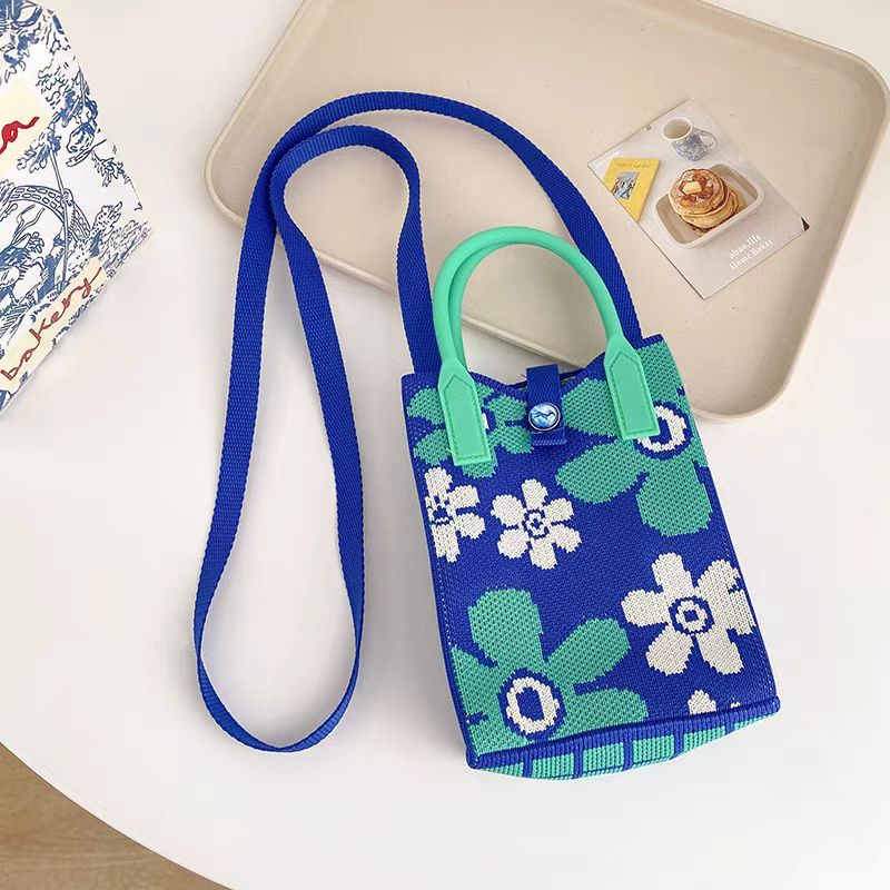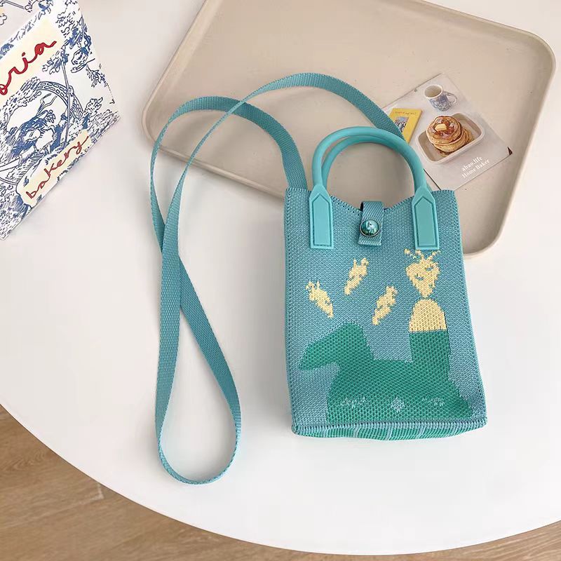귀엽고 상큼한 여성용 크로스백, 니트백, 니트백, 핸드폰가방, 학생 숄더백, 니트 핸드백