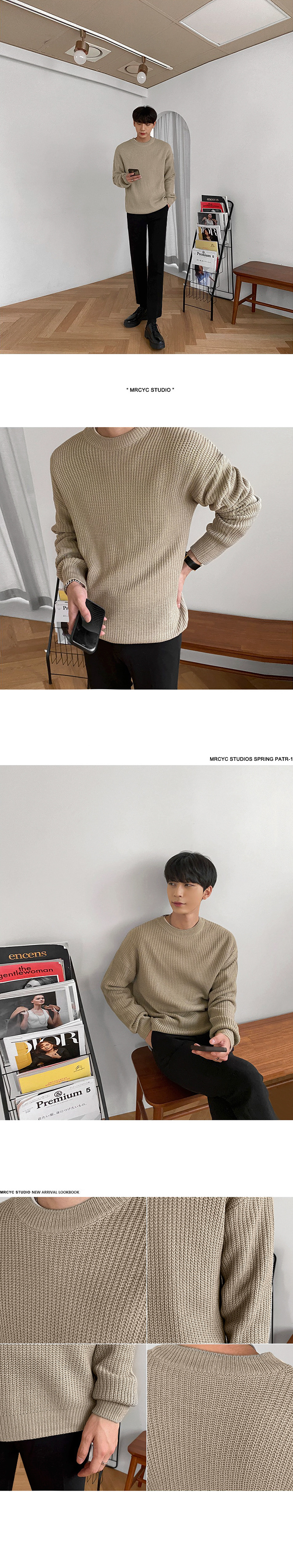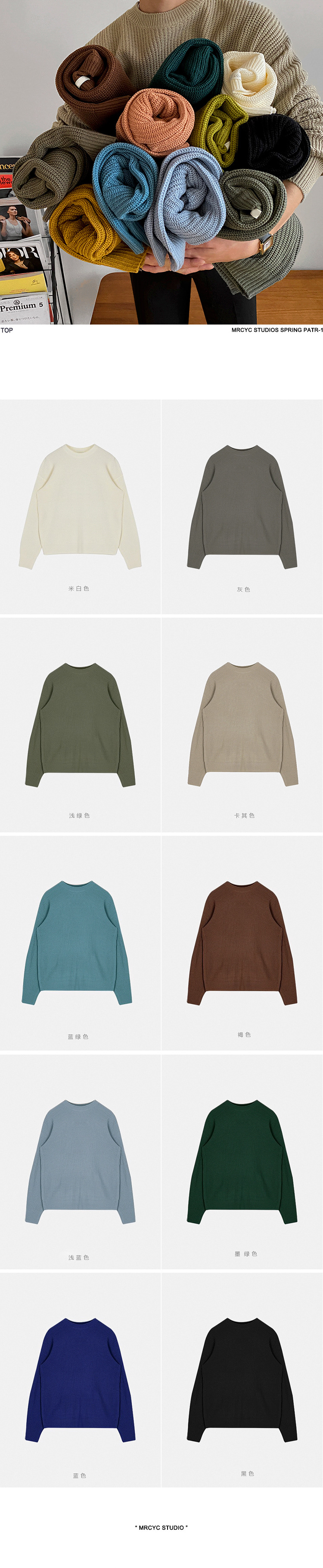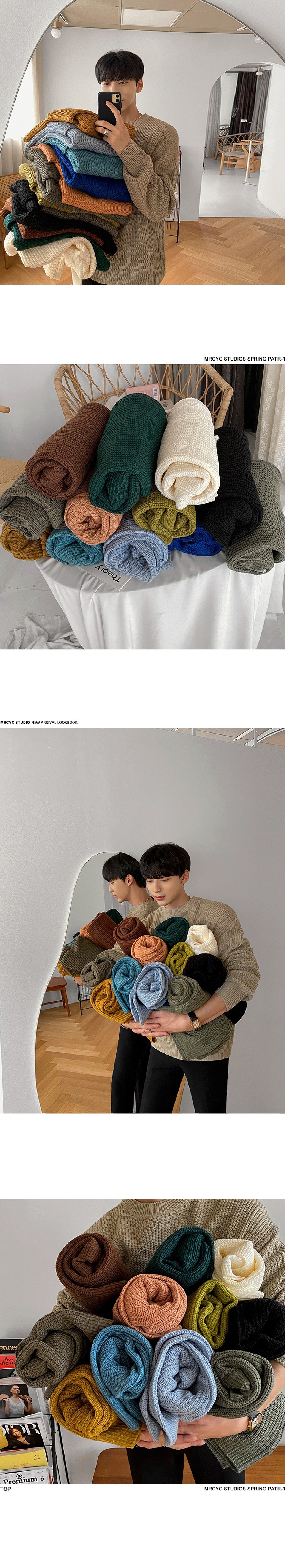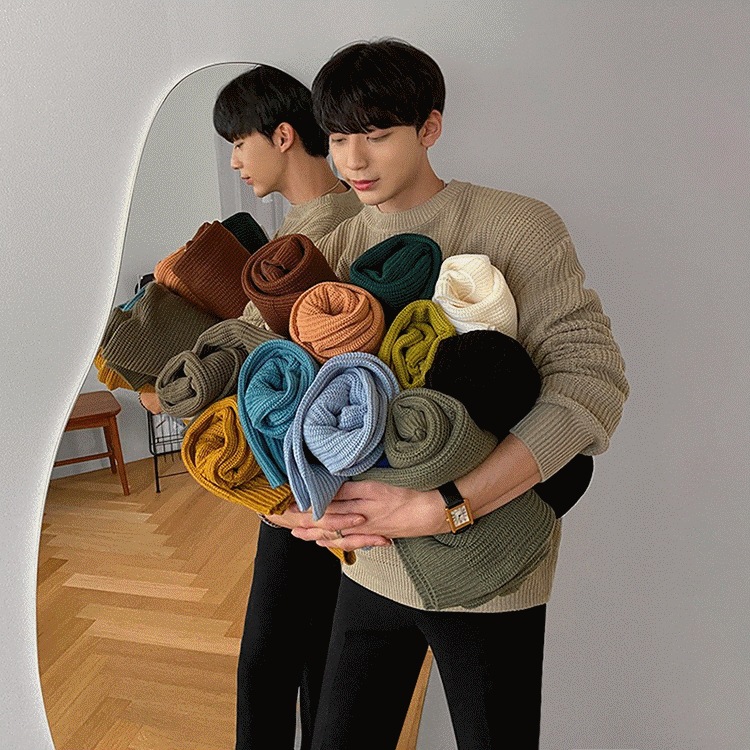 MYQ 남자 스웨터 가을과 겨울 두꺼운 둥근 목 느슨한 니트 스웨터 한국 올매치베이스 셔츠 솔리드 컬러 스웨터 트렌디스토어 가기