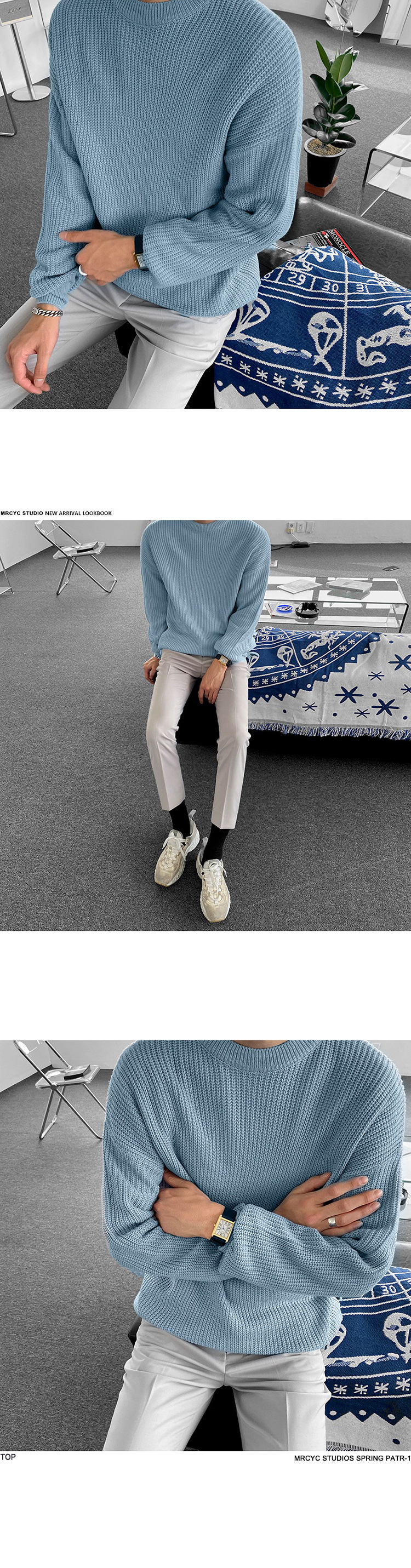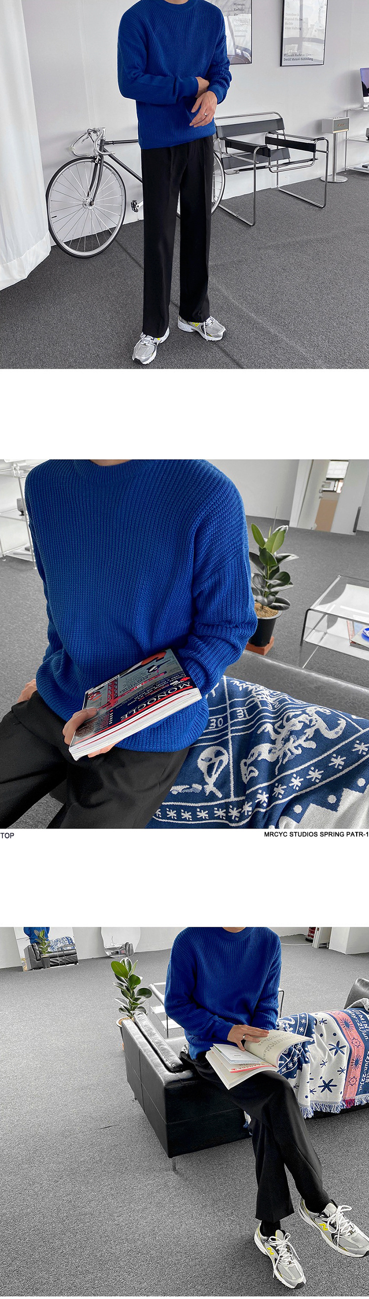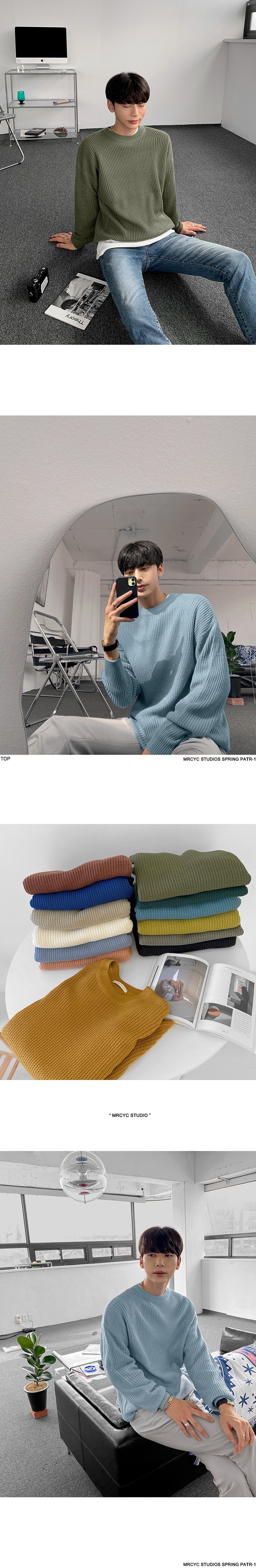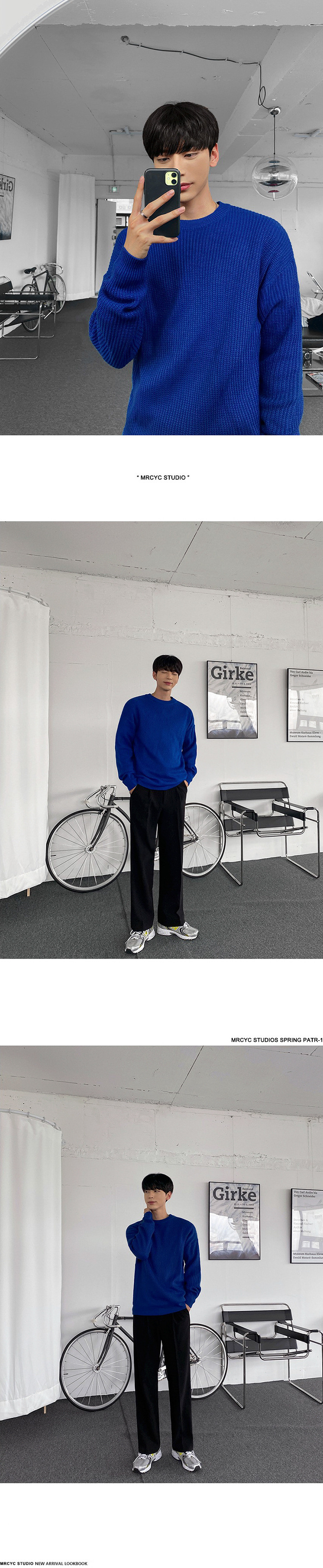 MYQ 남자 스웨터 가을과 겨울 두꺼운 둥근 목 느슨한 니트 스웨터 한국 올매치베이스 셔츠 솔리드 컬러 스웨터 트렌디스토어 가기