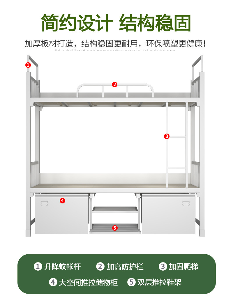 군용 기숙사용 이층침대, 철제 프레임 침대, 직원용 강철 두꺼운 이층침대, 아파트 침대, 올스틸