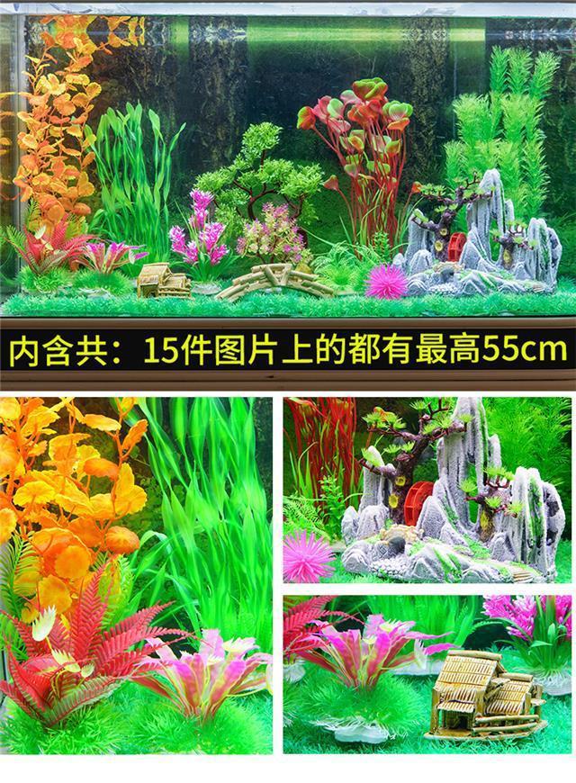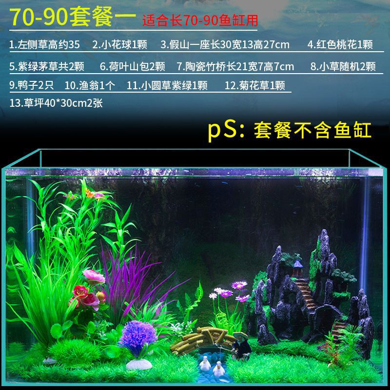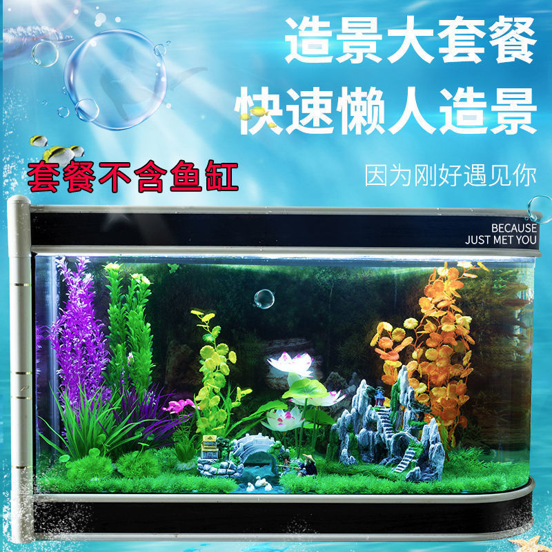물고기 탱크 조경 나무 숲 패키지 시뮬레이션 물 식물 작은 다리 흐르는 물 바위 돌 수족관 세트 장식 장식품스토어 가기