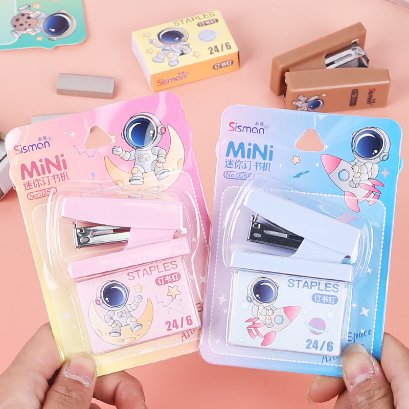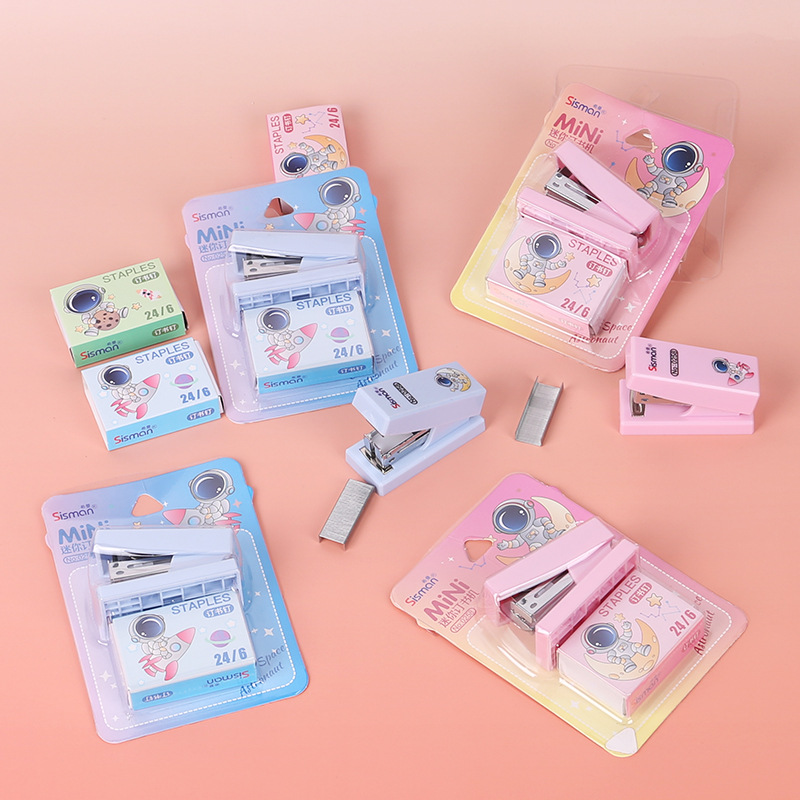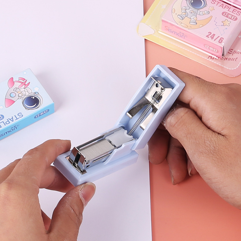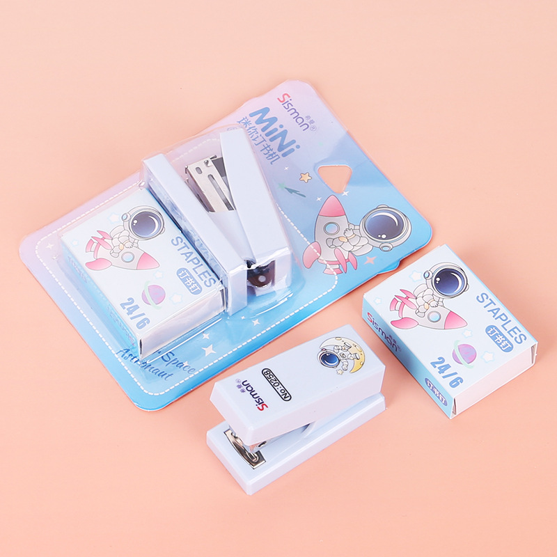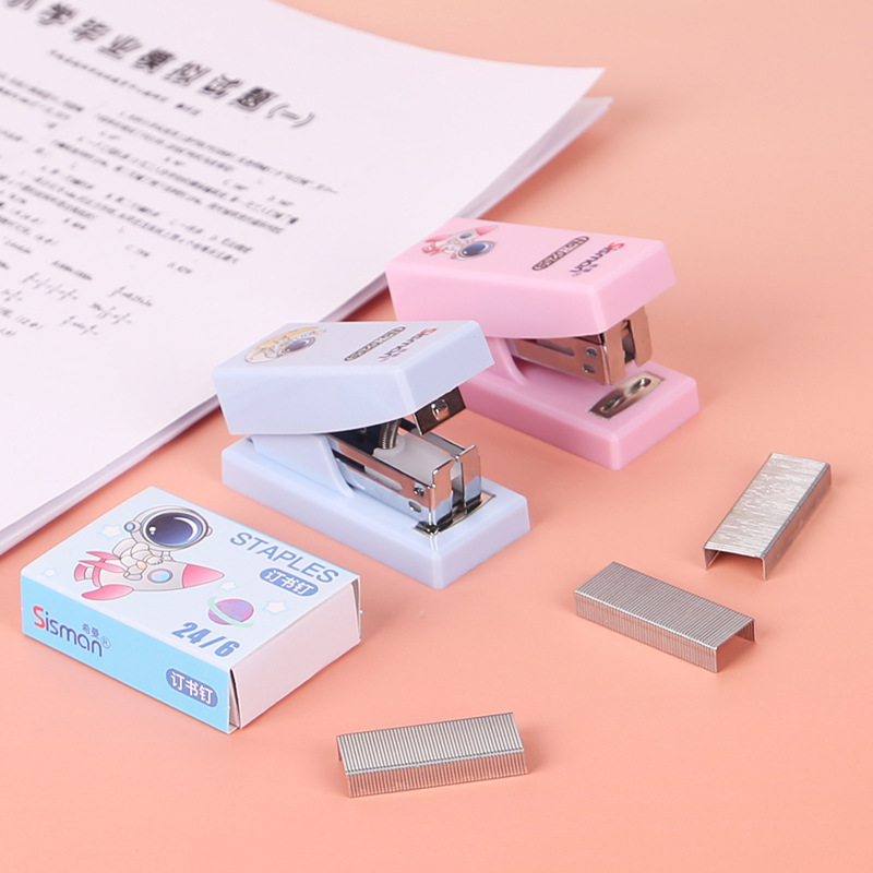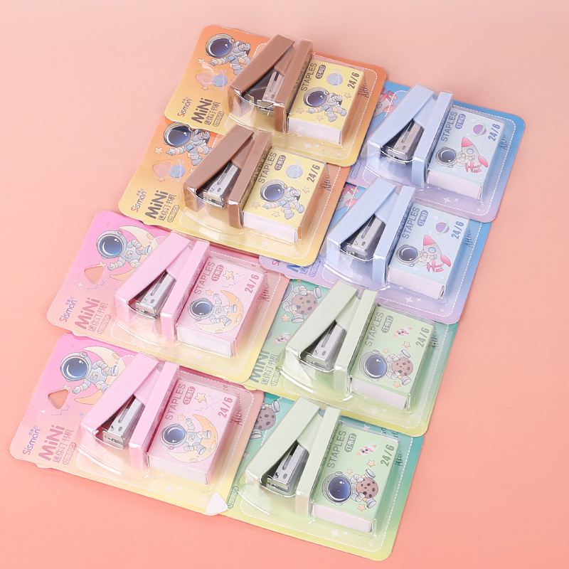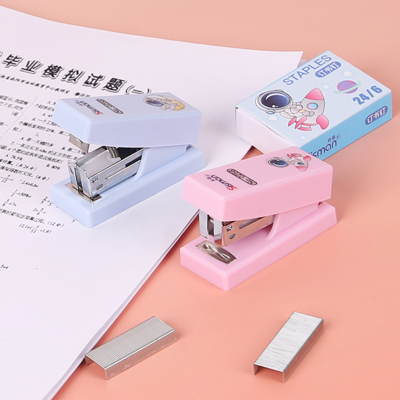 만화 미니 세트 스테이플러 작은 모델 문구 스테이플러 학생 귀여운 휴대용 테스트 종이 바인딩 기계스토어 가기