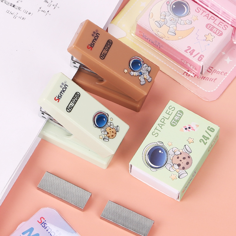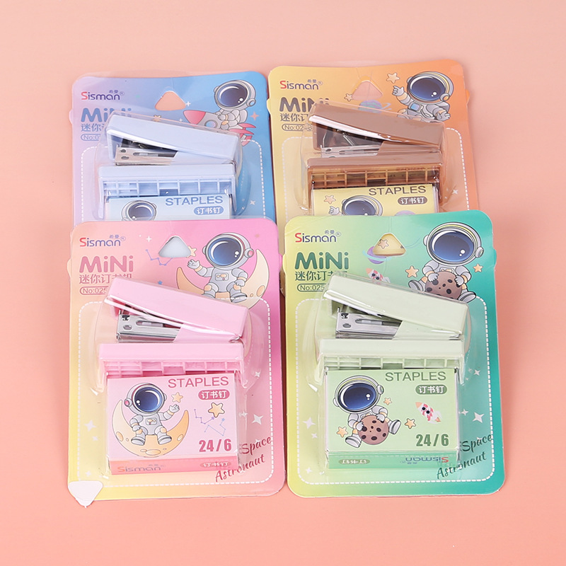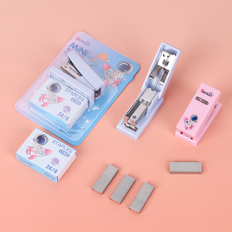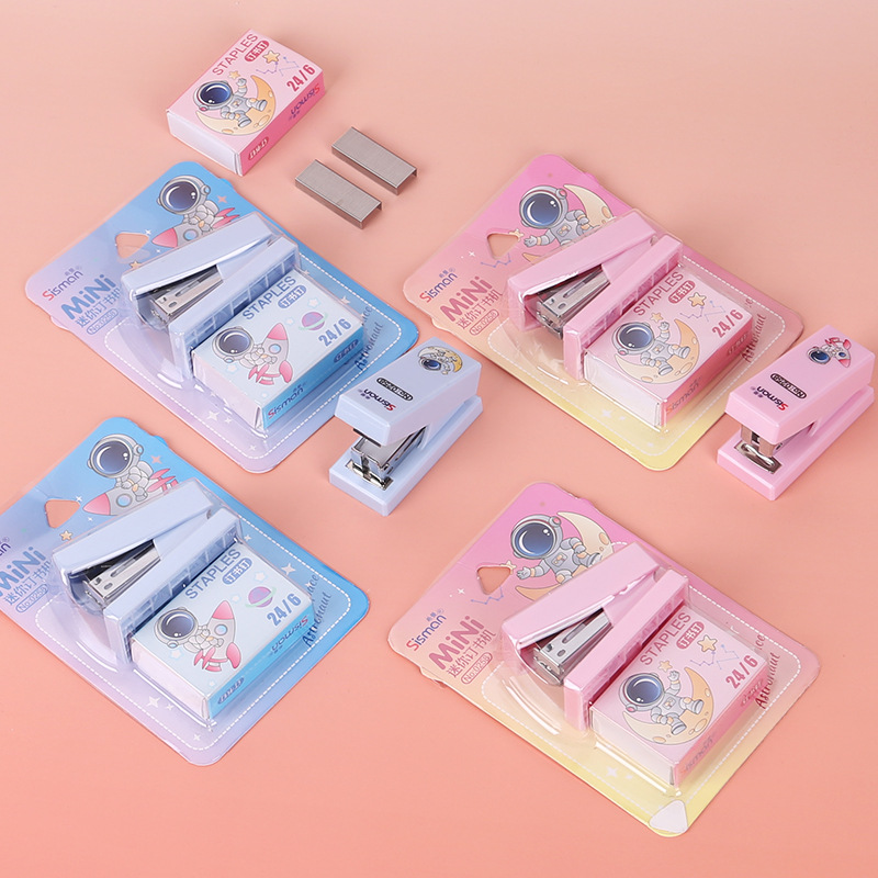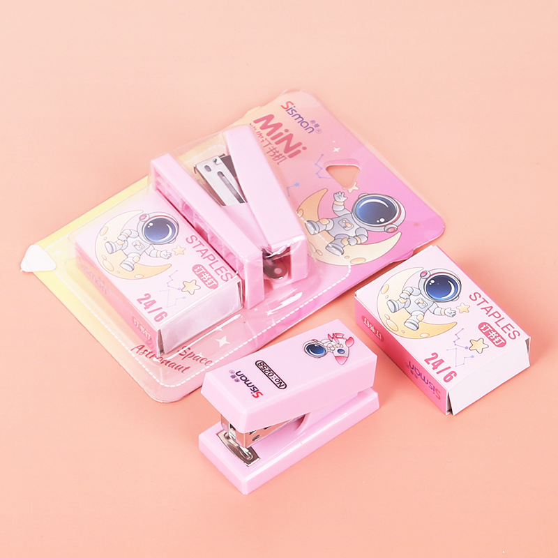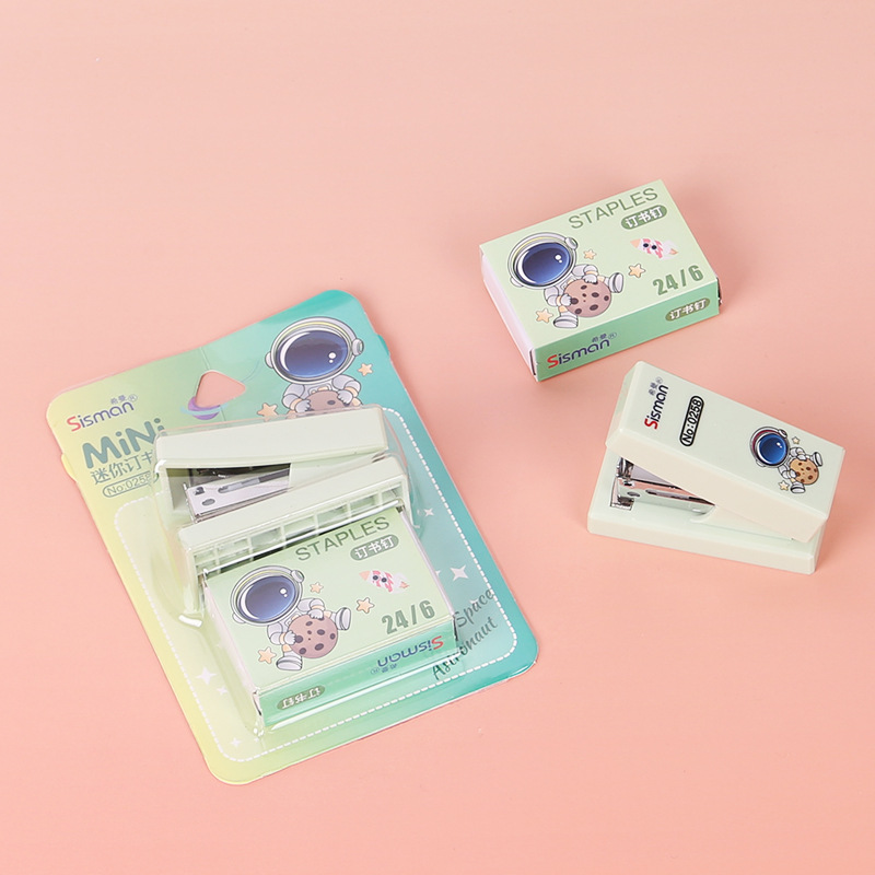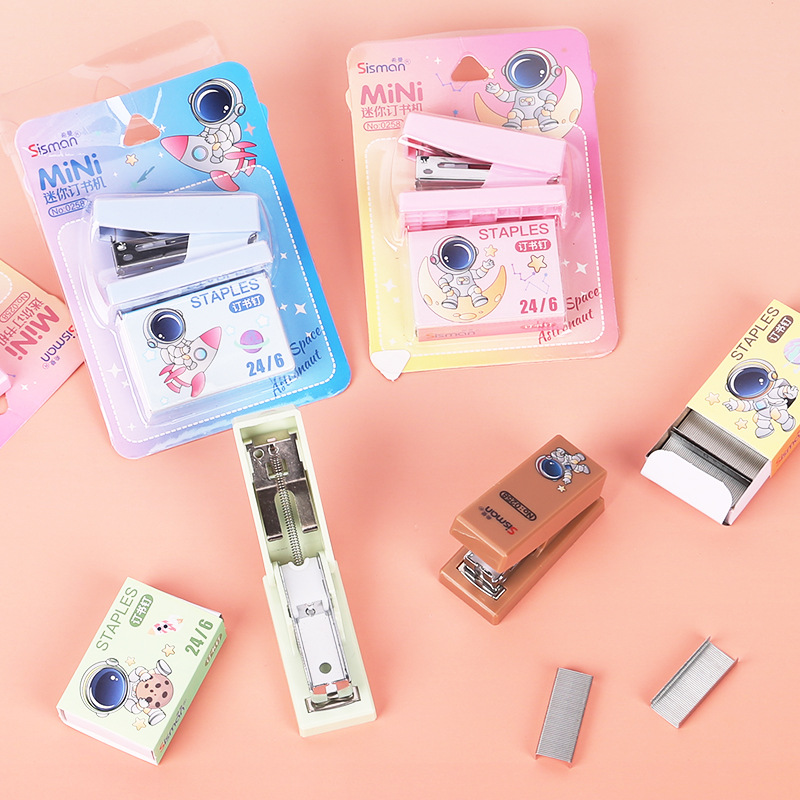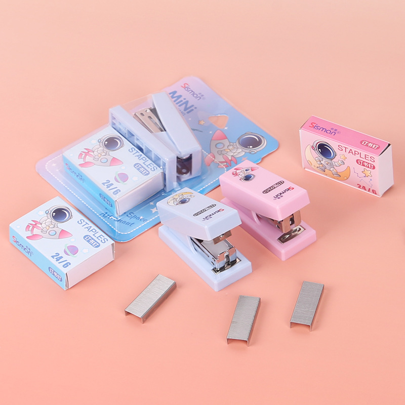 만화 미니 세트 스테이플러 작은 모델 문구 스테이플러 학생 귀여운 휴대용 테스트 종이 바인딩 기계스토어 가기