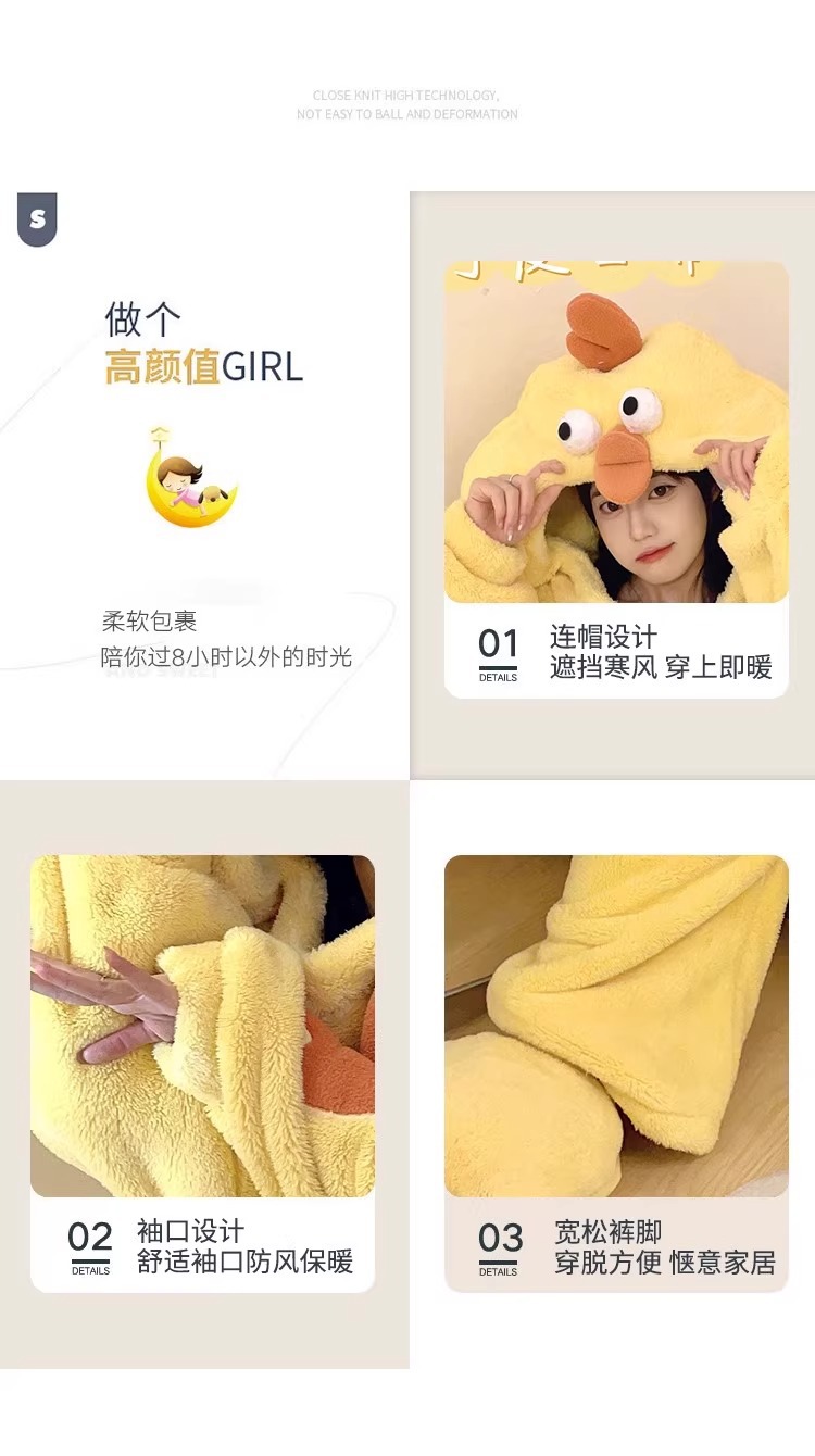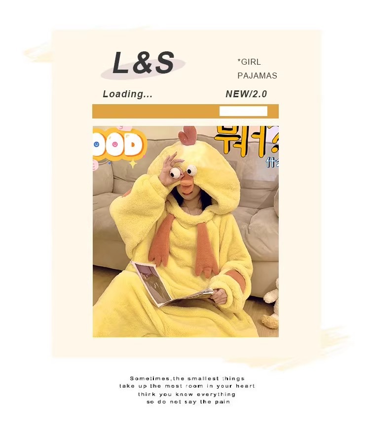 귀여운 노란색 치킨 커플 슬리퍼 남성과 여성의 두꺼운 산호 양털 홈 옷 겨울 성인 재미있는 잠옷스토어 가기