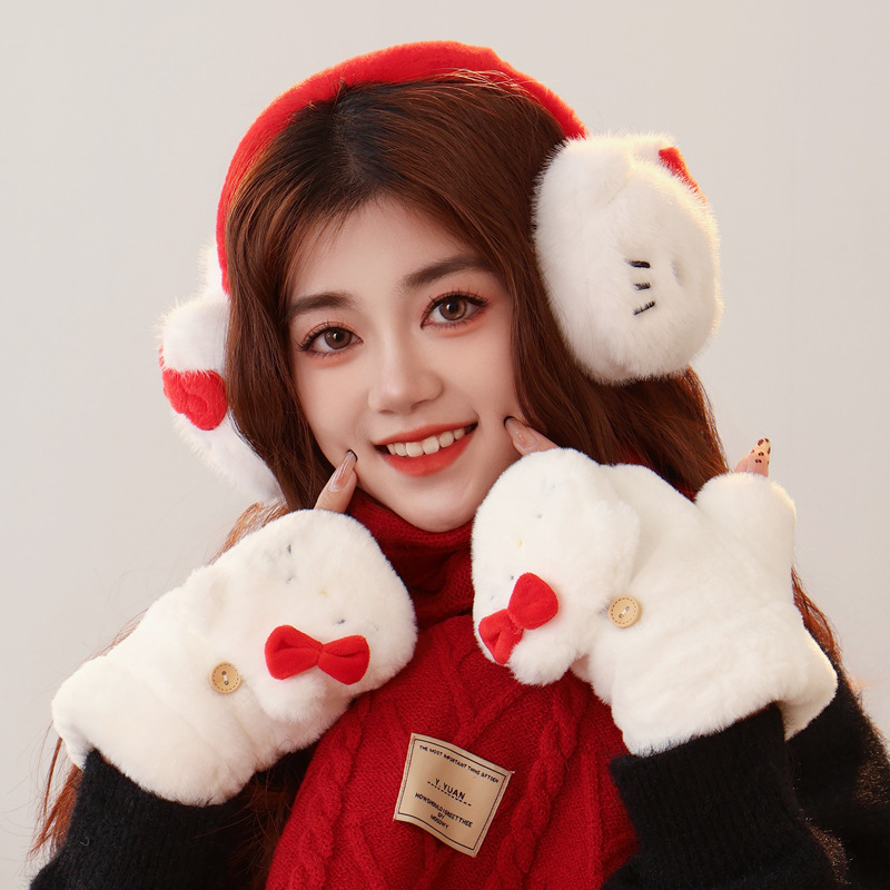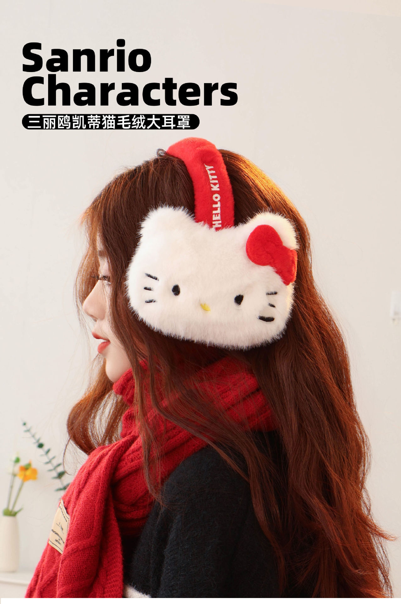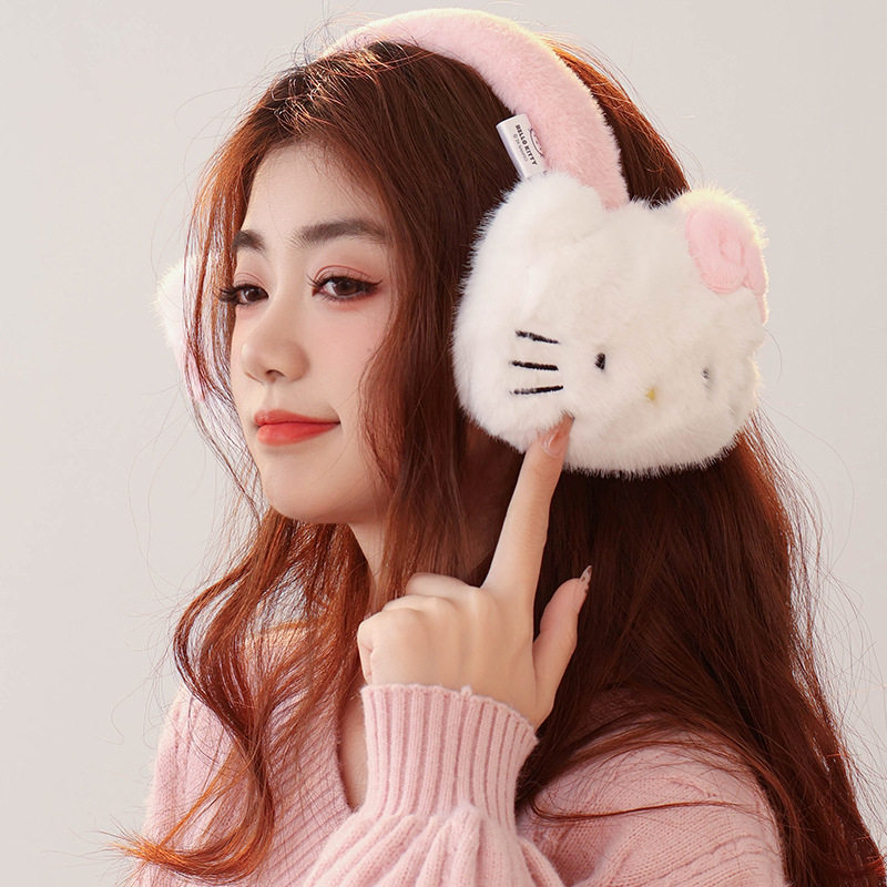 헬로 키티 봉제 귀마개 여성용 겨울 새 KT 고양이 큰 머리 귀여운 달콤한 귀 보호 방냉기 따뜻한 승마