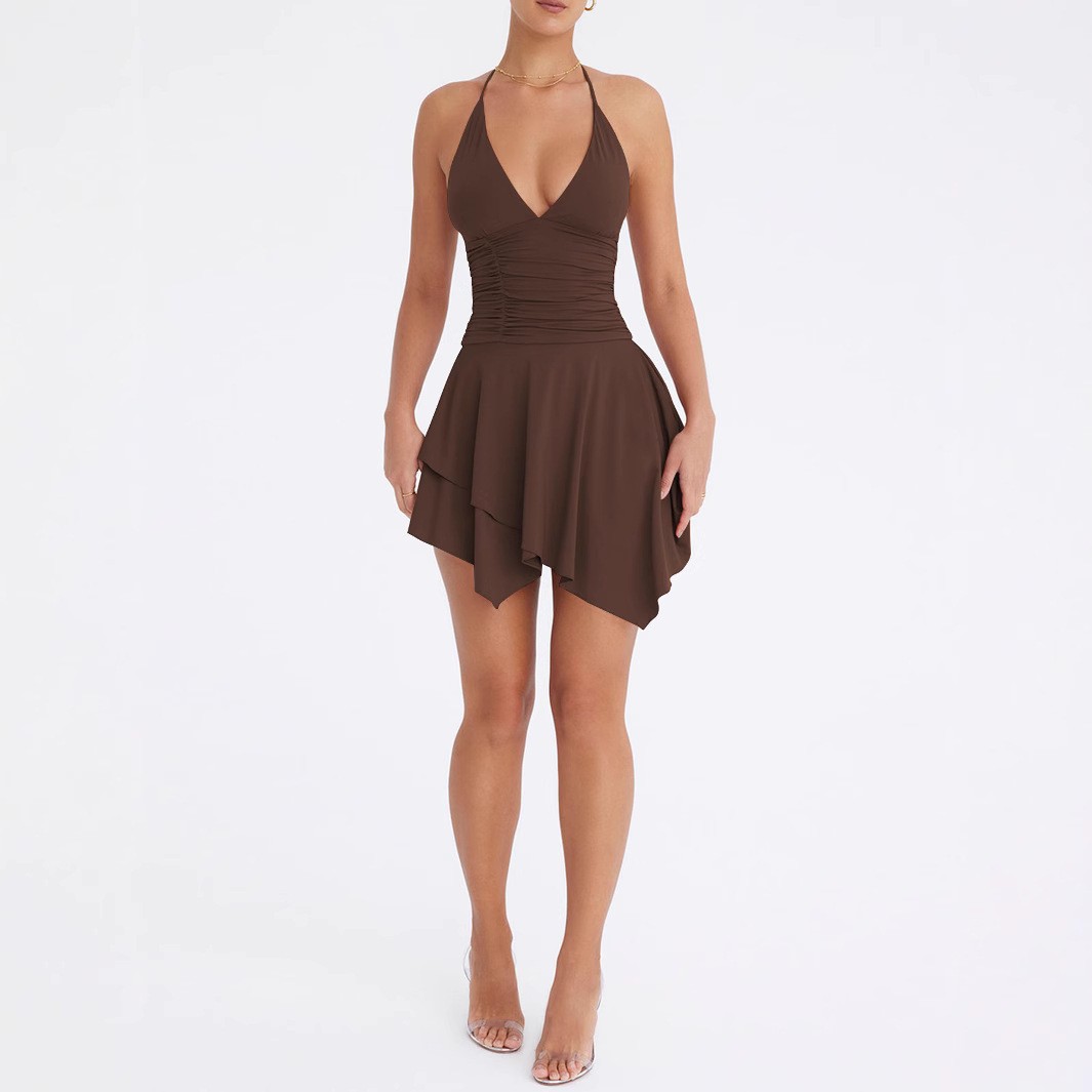 2024 Amazon Cross-border New Women's Deep V-neck Neck Backless Lace-up Sexy Pleated 원피스
