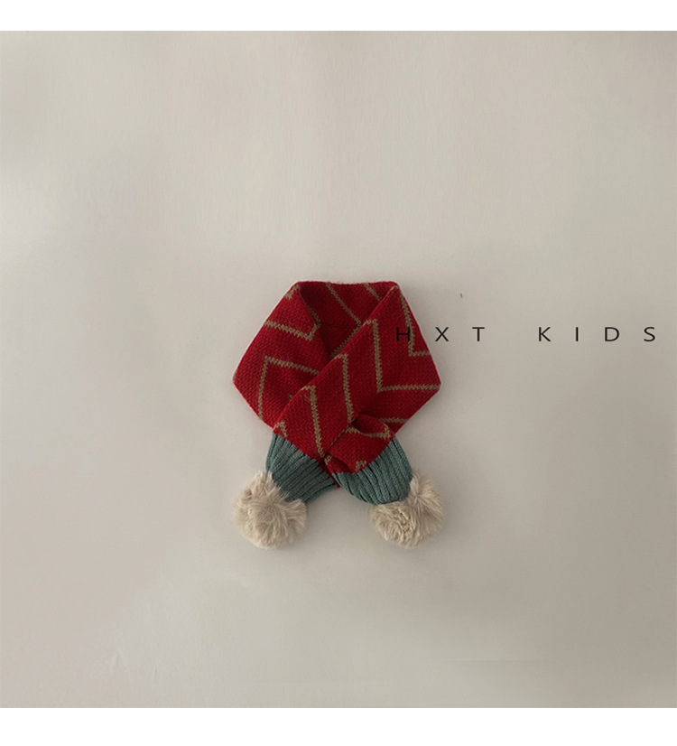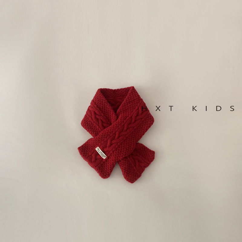 어린이 스카프 겨울 서양식 레드 시리즈 작은 라벨 크로스 스카프 한국 아기의 겨울 따뜻한 목 세트