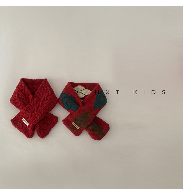 어린이 스카프 겨울 서양식 레드 시리즈 작은 라벨 크로스 스카프 한국 아기의 겨울 따뜻한 목 세트스토어 가기