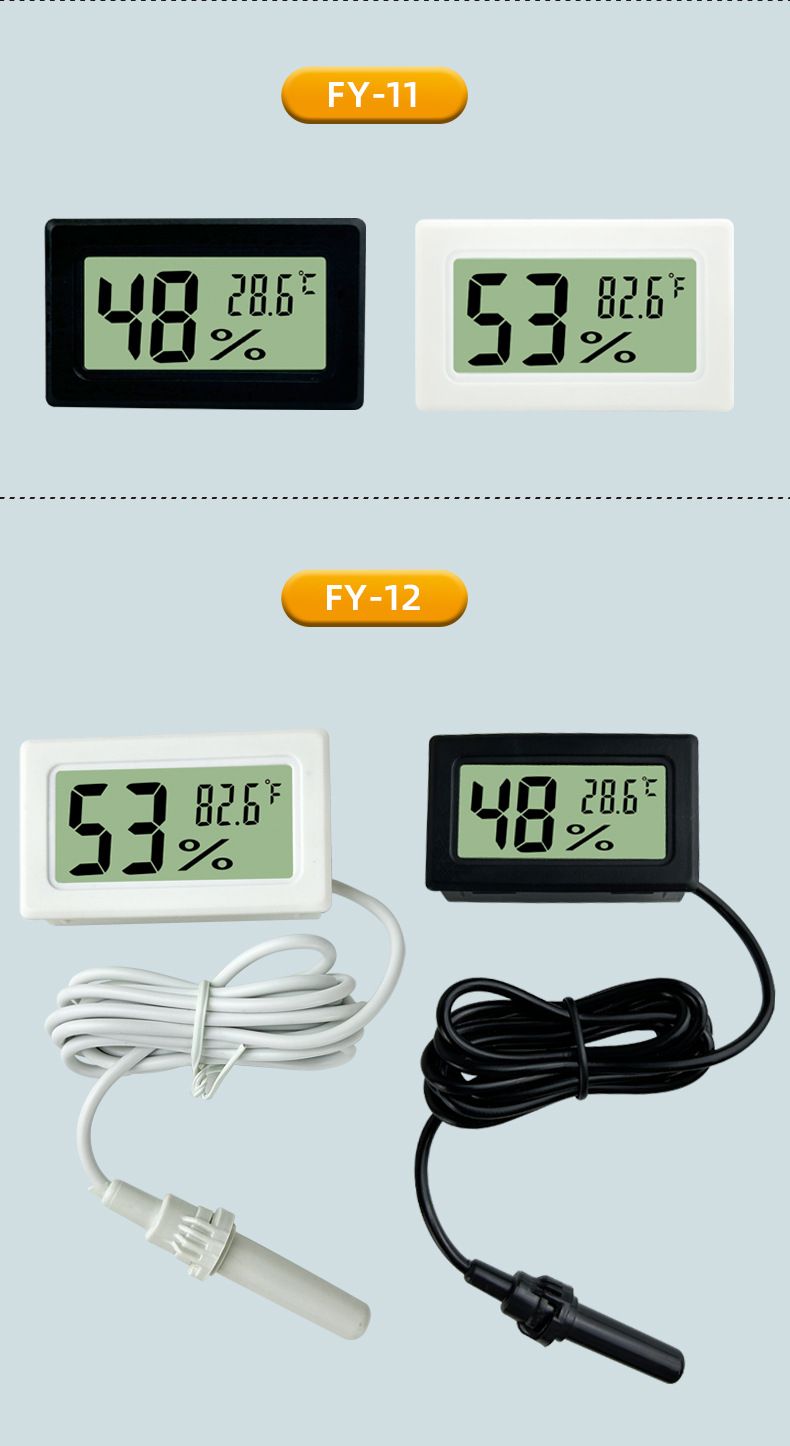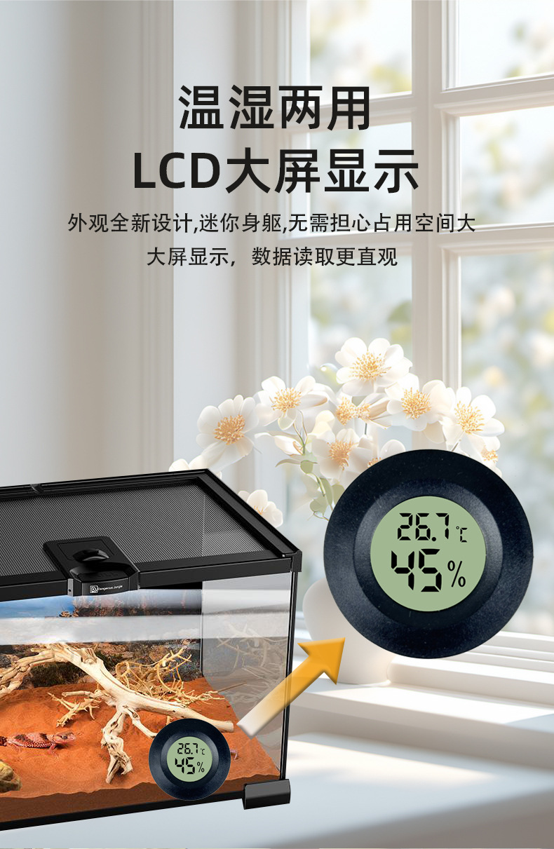 라운드 스퀘어 미니 애완 동물 상자 온도 습도계 디지털 전자 온도 습도계 실내 자동차 등반 애완 동물 온도계