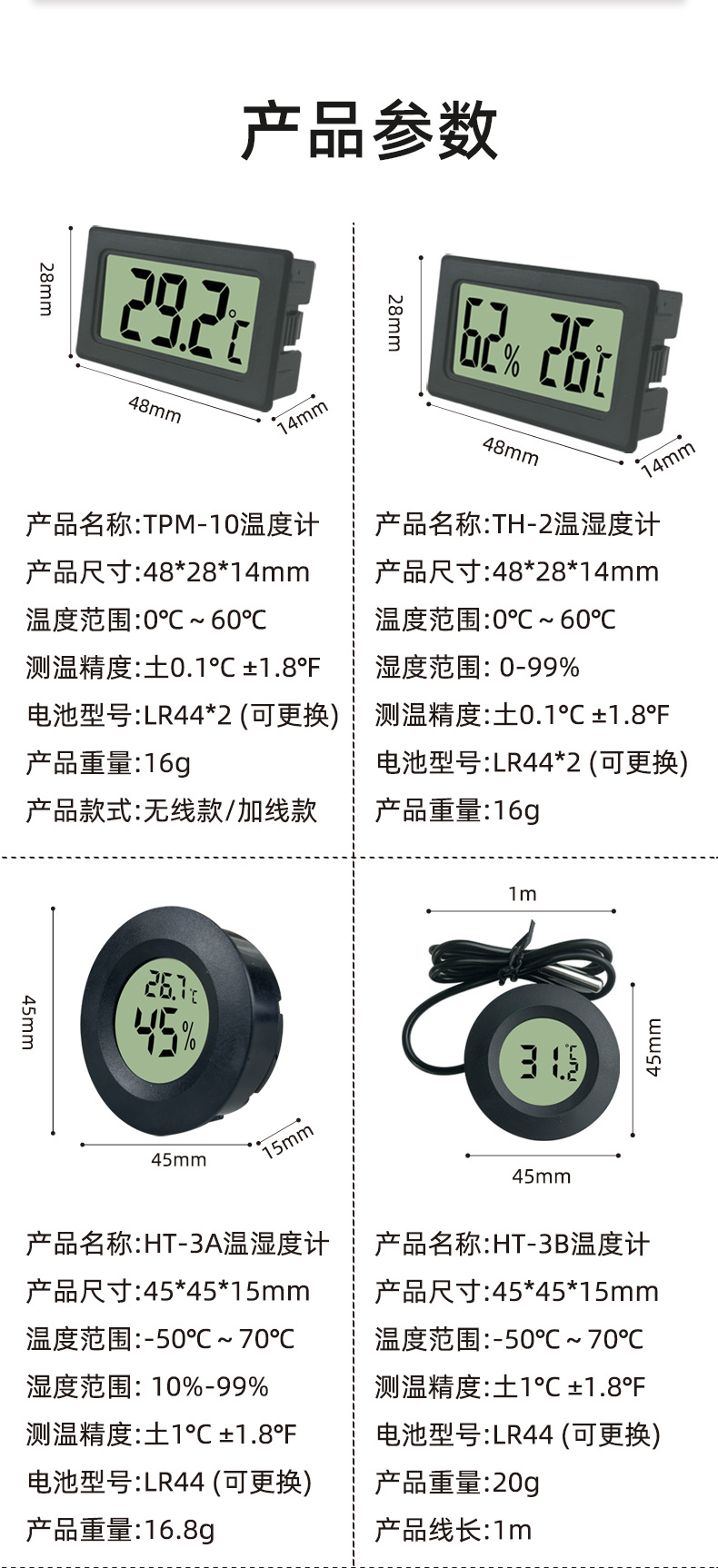 • HT-3C 원형 온도계 및 습도계 프로브 모델 흰색