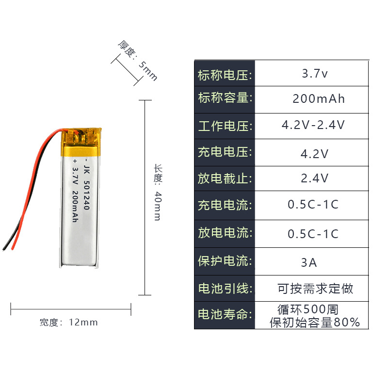 501240 폴리머 리튬 배터리 200mAh3.7V 레이저 포인터 넥 헤드셋 충전식 리튬 배터리