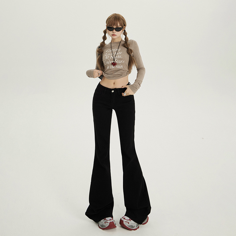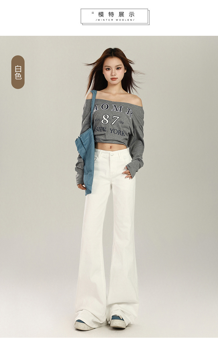 흰색 레깅스 없는 부츠컷 청바지 여성용 가을 겨울 기모 로우 웨이스트 슬림핏 신축성 만능 말굽형 바닥 길이 바지스토어 가기